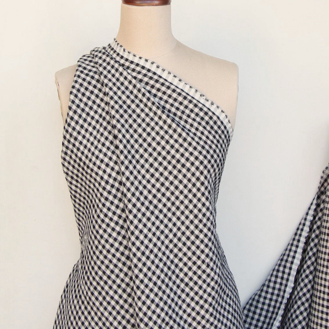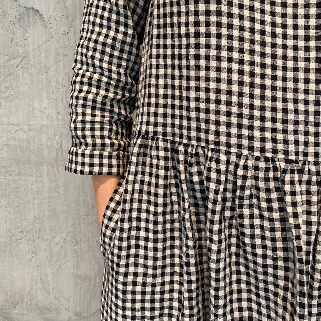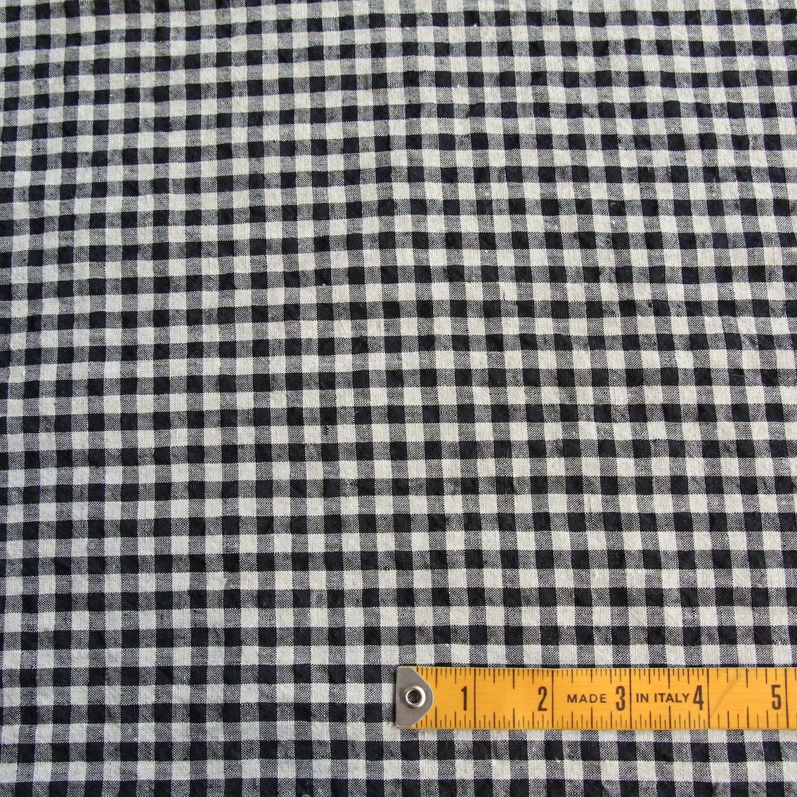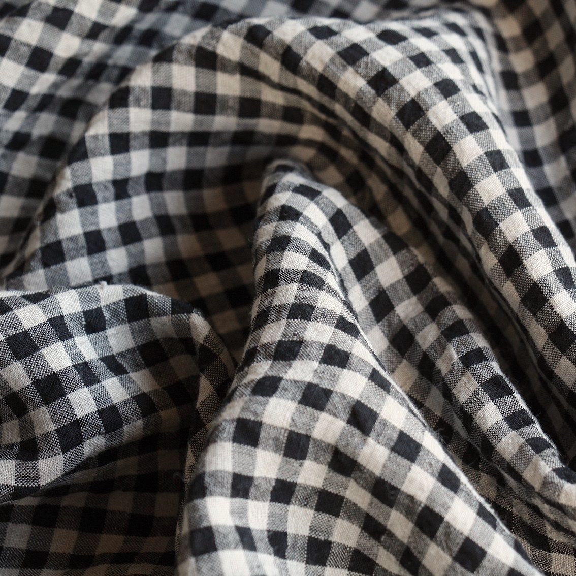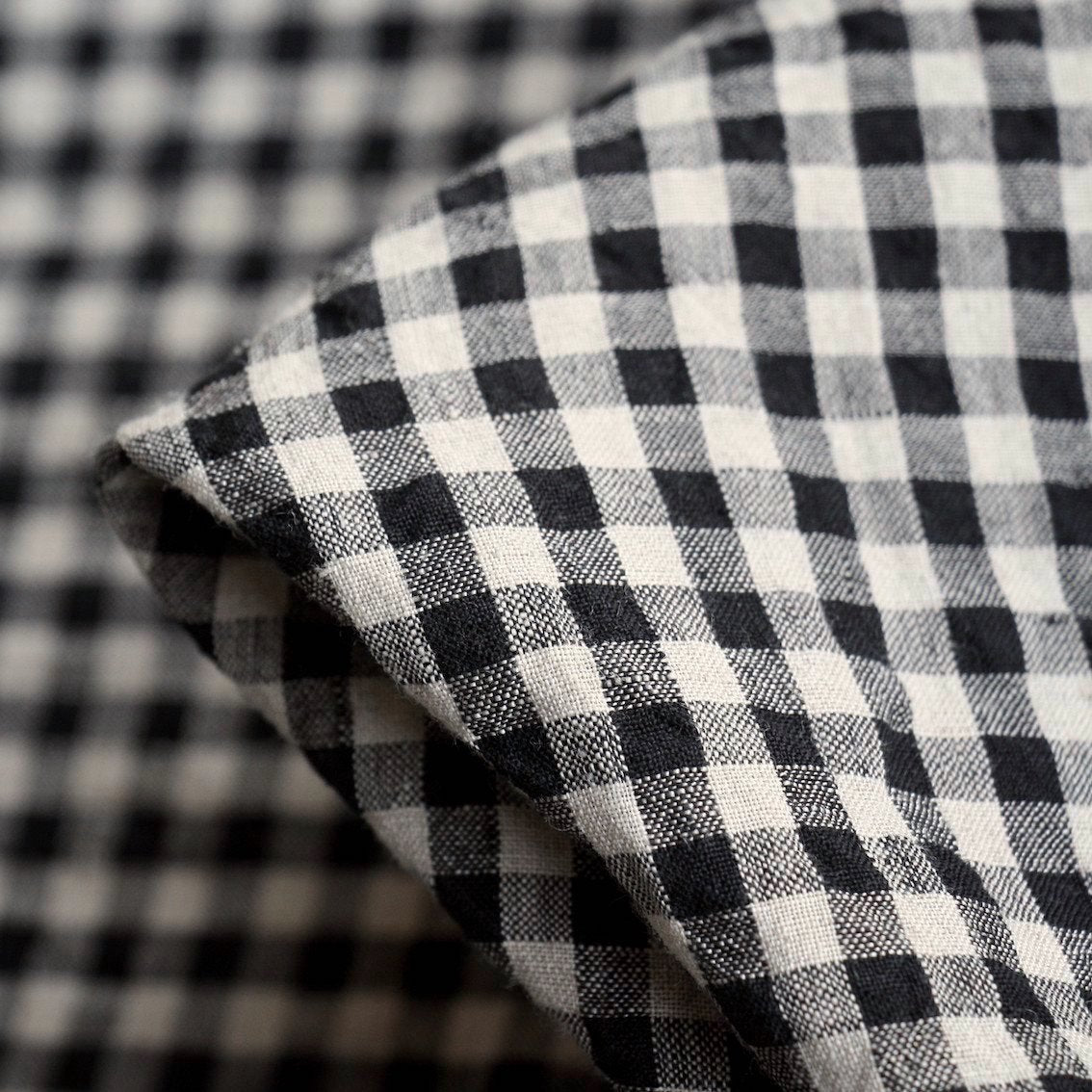 Black/natural check washed 100% linen.