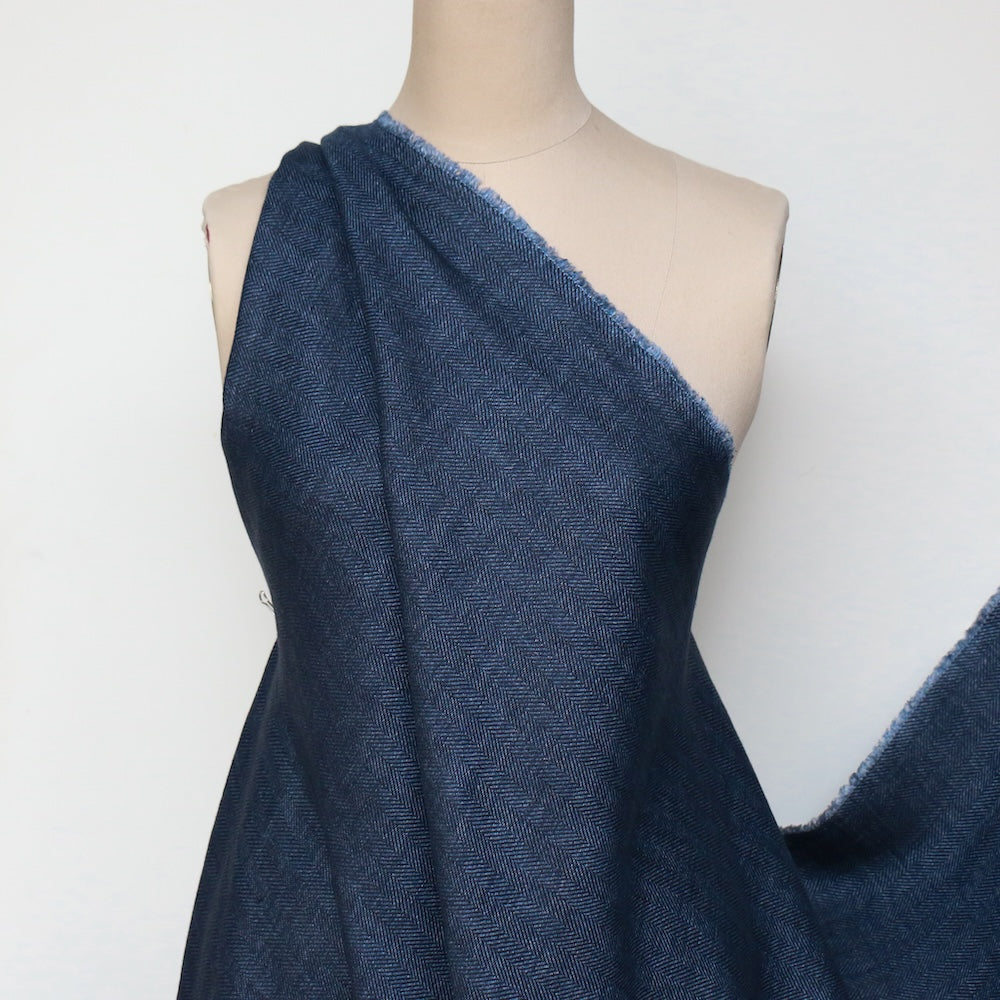 Italian designer navy/blue herringbone 100% linen
