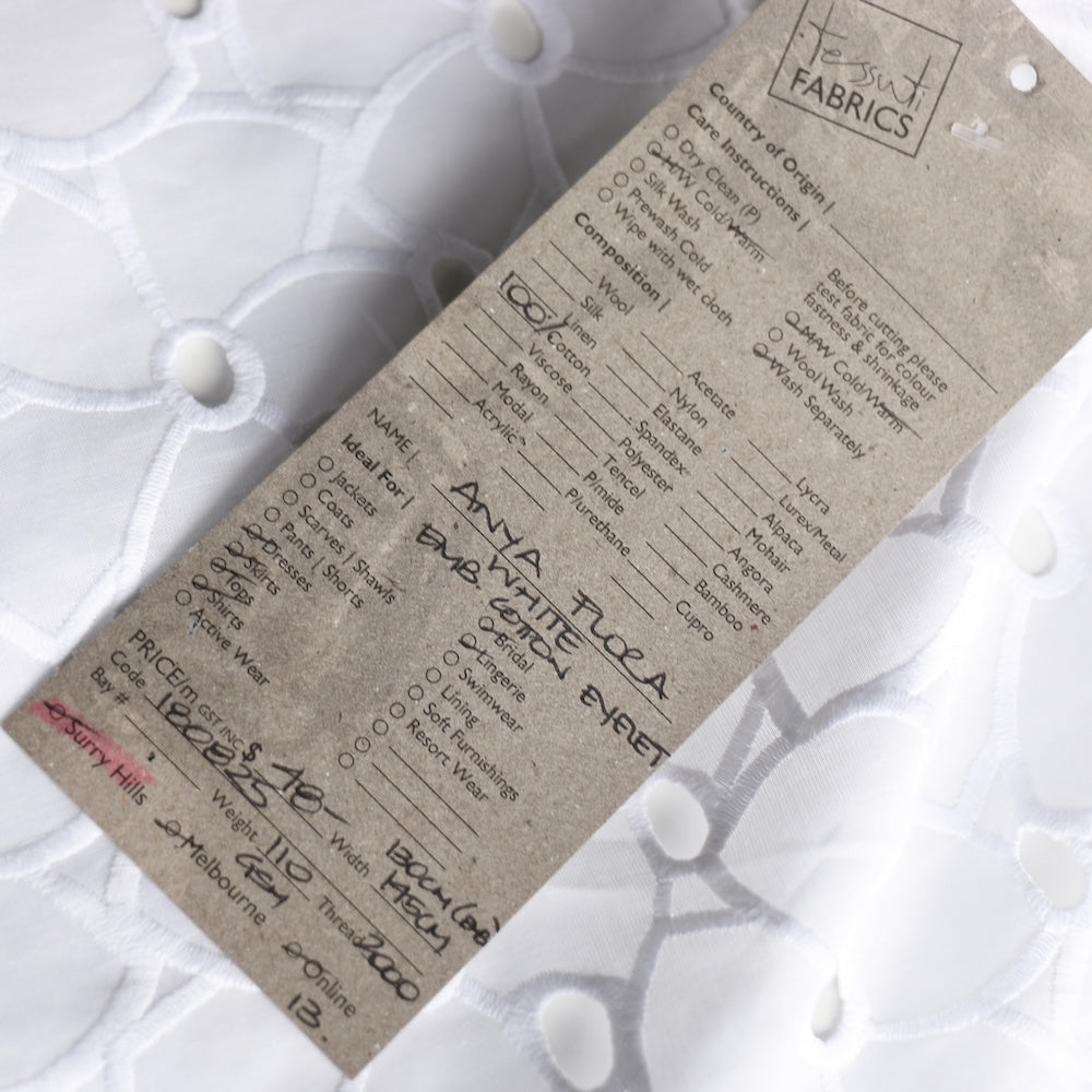 White floral embroidered 100% cotton eyelet
