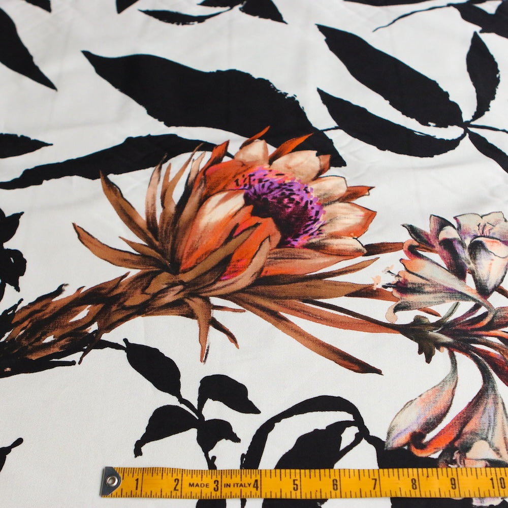 Designer printed 60% cotton 37% viscose 4% elastane stretch woven