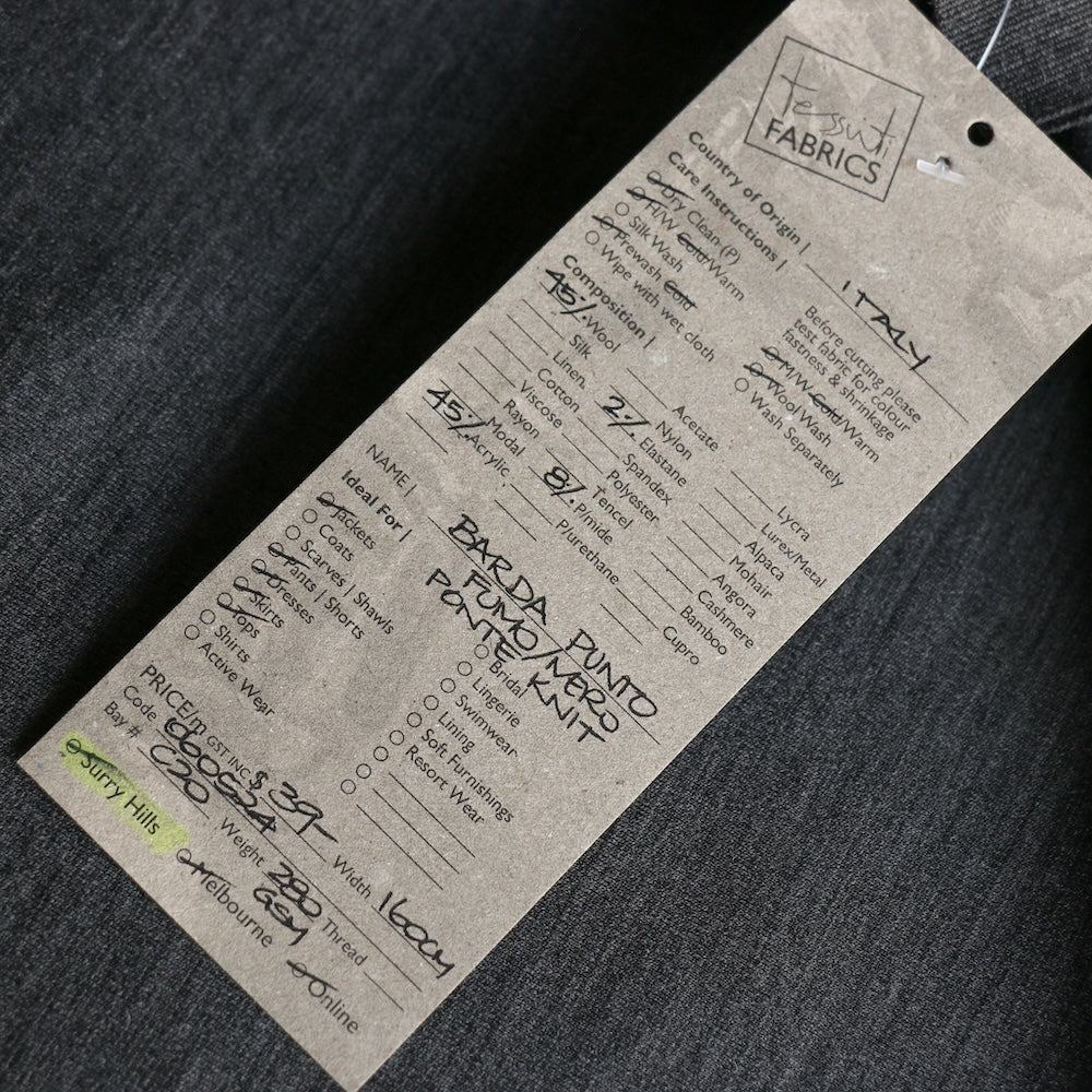 Italian charcoal/black marle 45% wool 45% acrylic 8% polyamide 2% elastane ponti knit