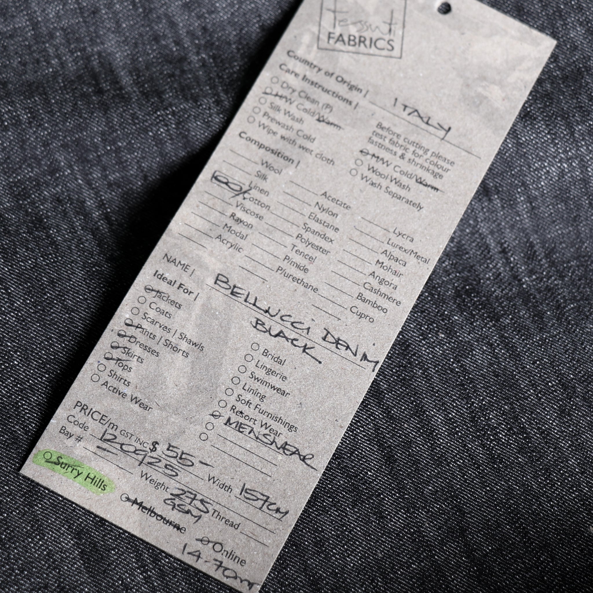 Italian black 100% cotton denim