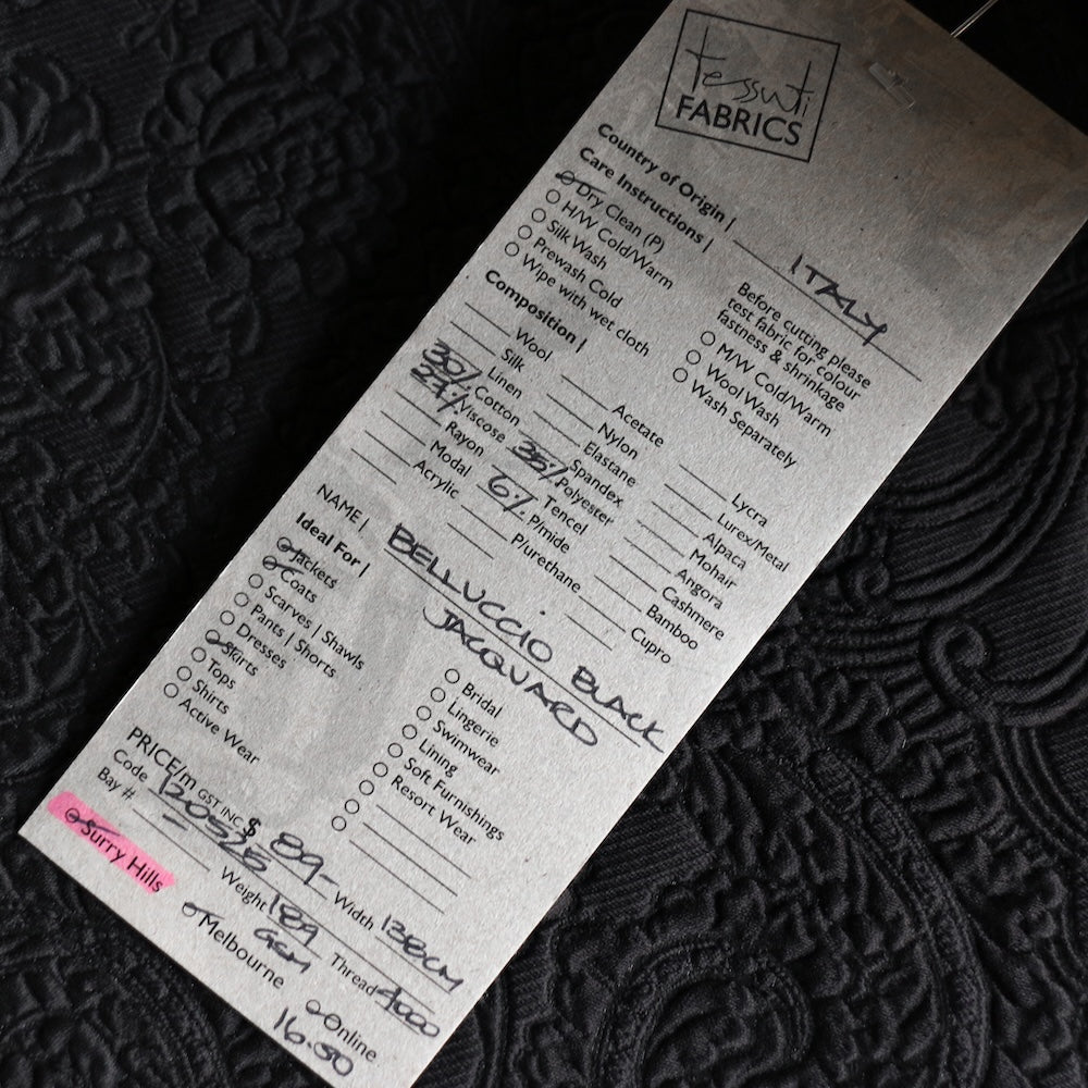 Italian designer black 35% polyester 30% cotton 27% viscose 6% polyamide textured jacquard
