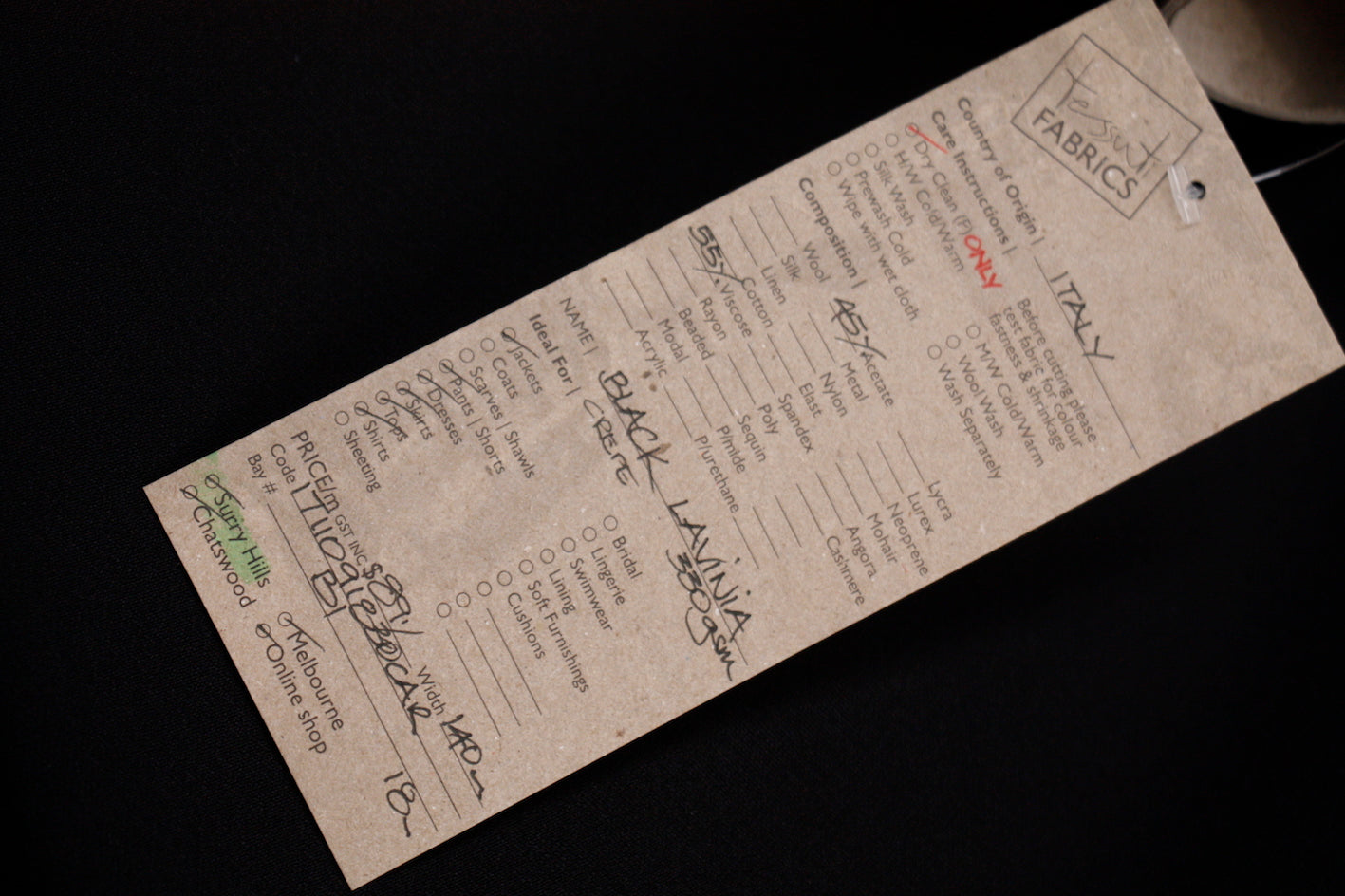 Black Italian 55% viscose 45% acetate double crepe . Width:140cm. Weight:330gsm