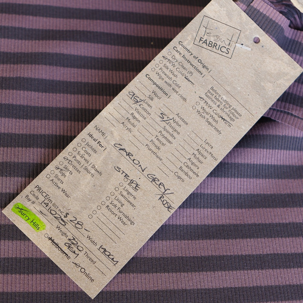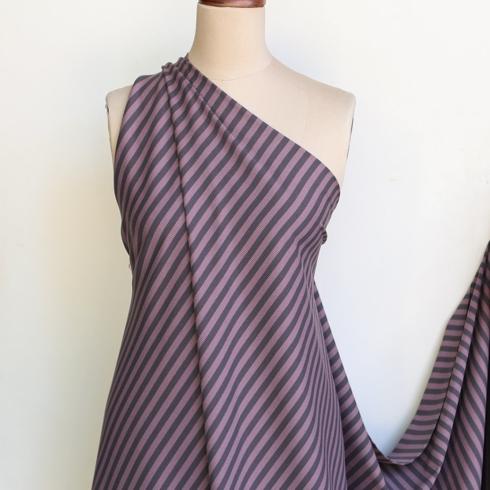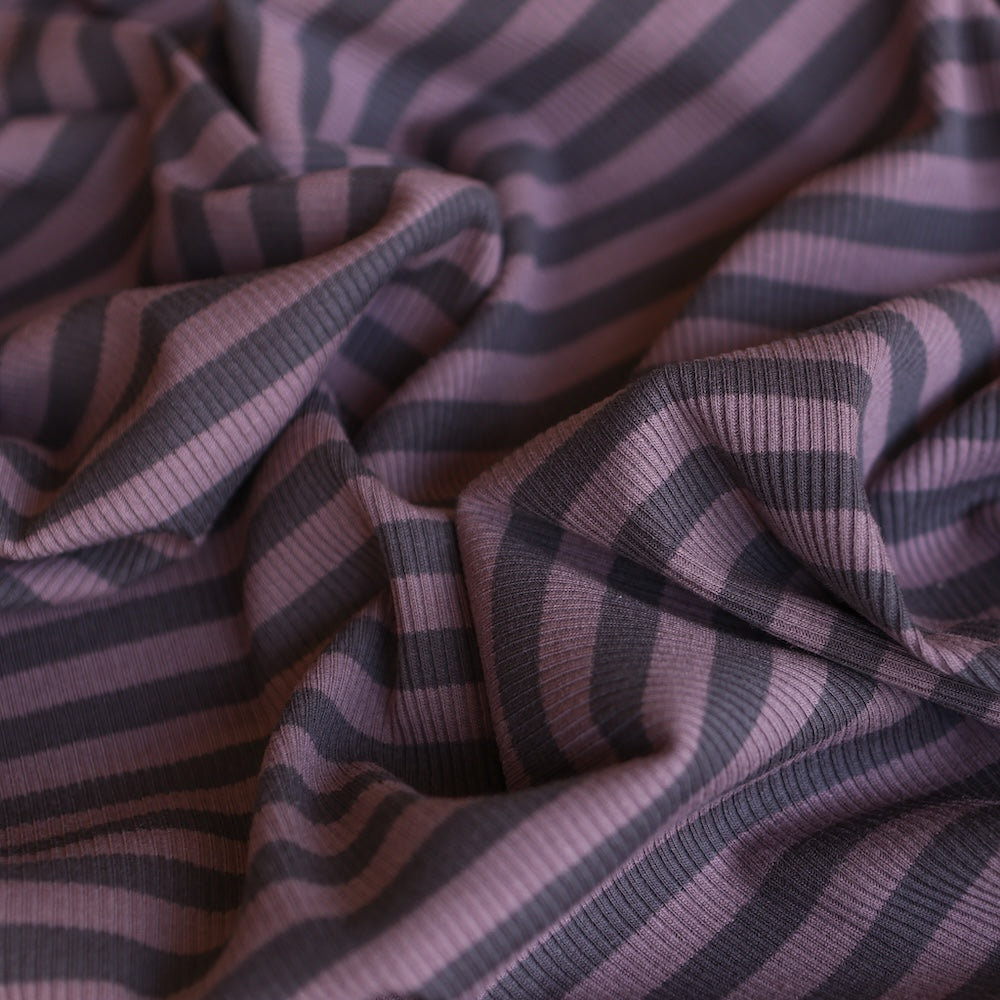 Grey/rose pink striped 95% cotton 5% elastane stretch rib knit