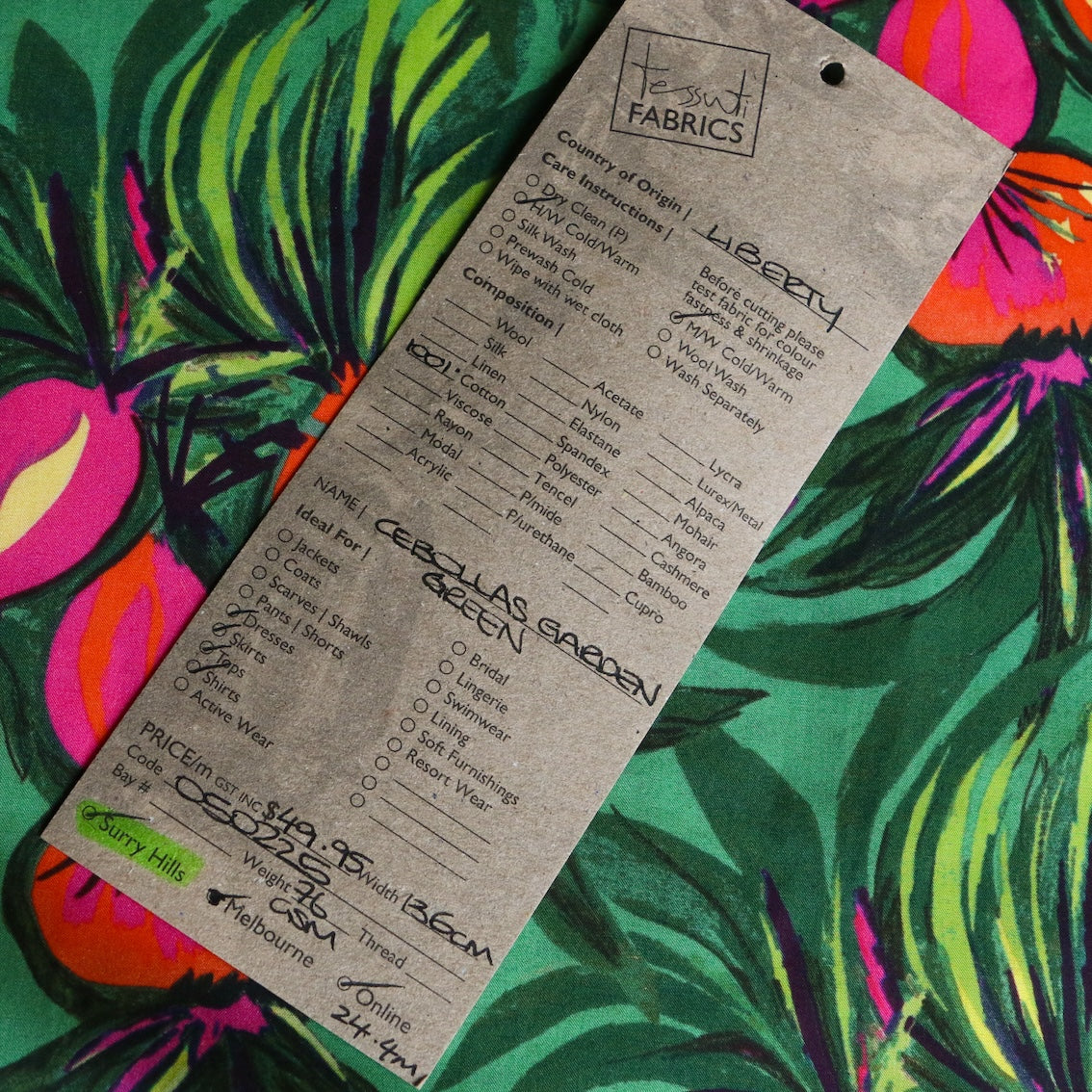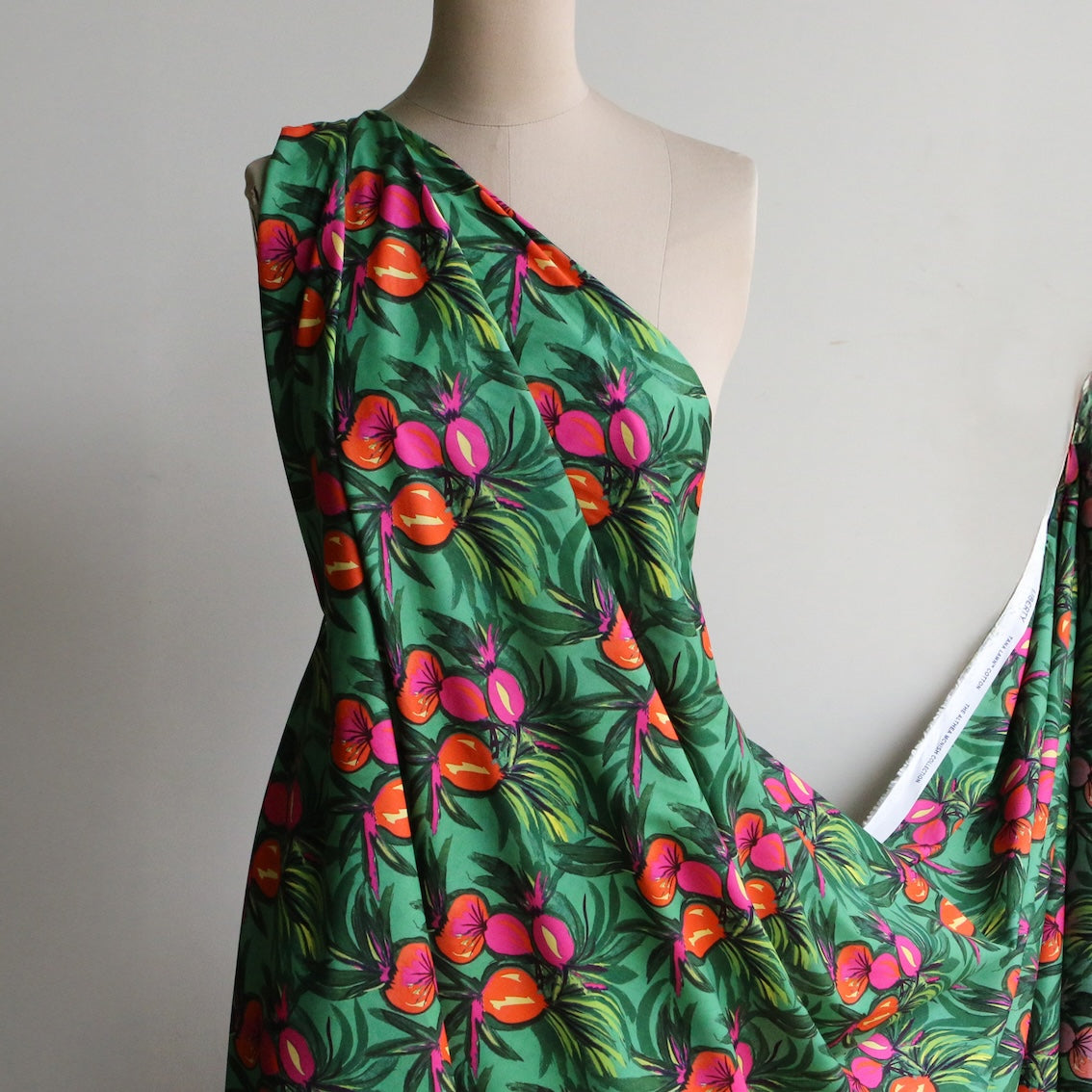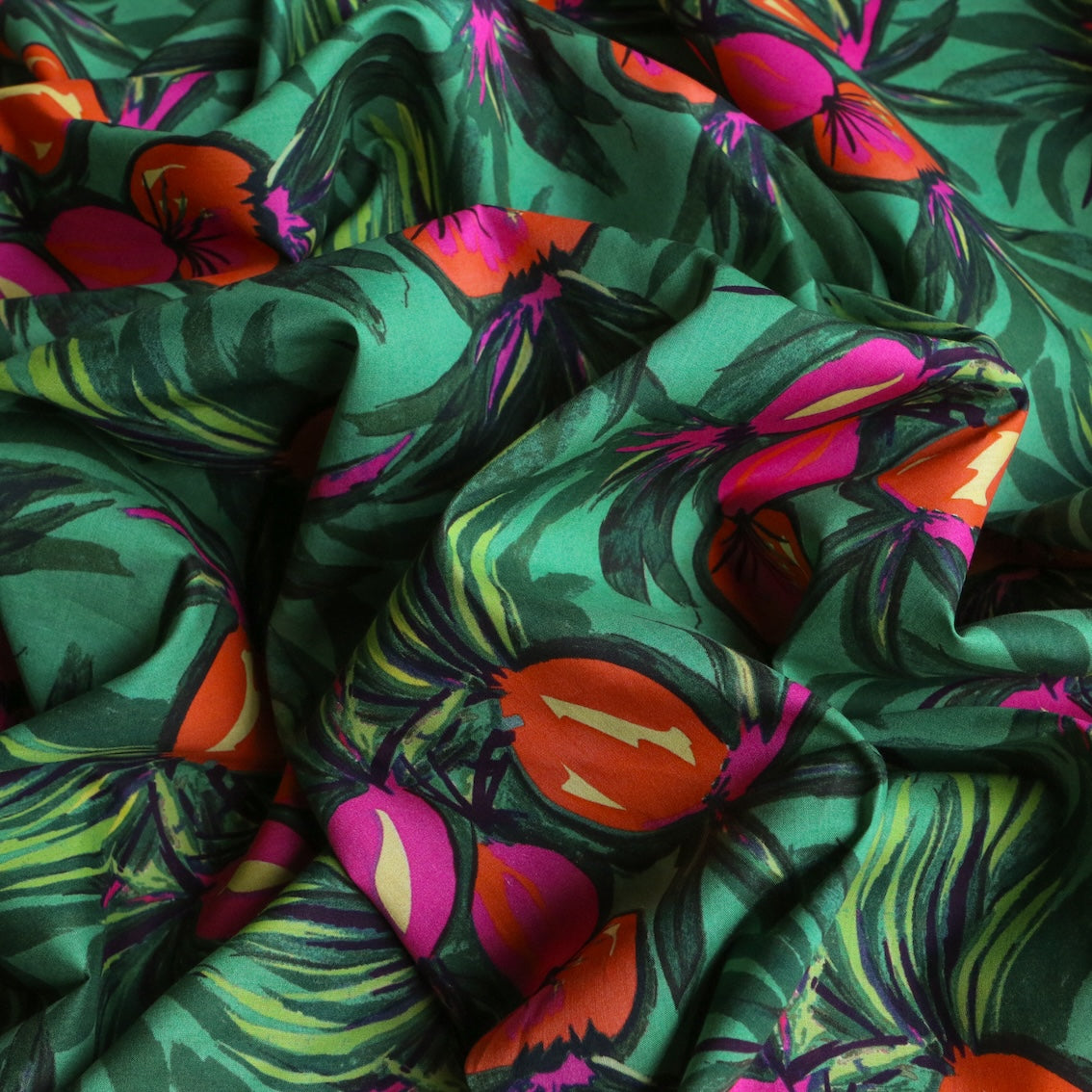 Liberty Fabrics green pink/orange retro floral 100% cotton Tana Lawn™