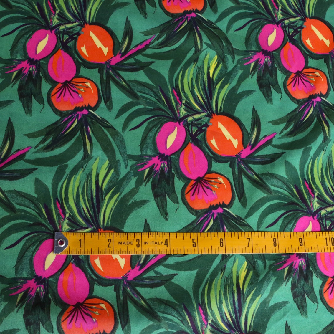 Cebollas Garden is a graphic painterly print, inspired by objects of everyday life and the humble Spanish onion, translated as ‘cebollas’. First created as a Liberty furnishing fabric for the seasonal 1960-1961 ranges, it has been re-coloured for this collection in dazzling hues.