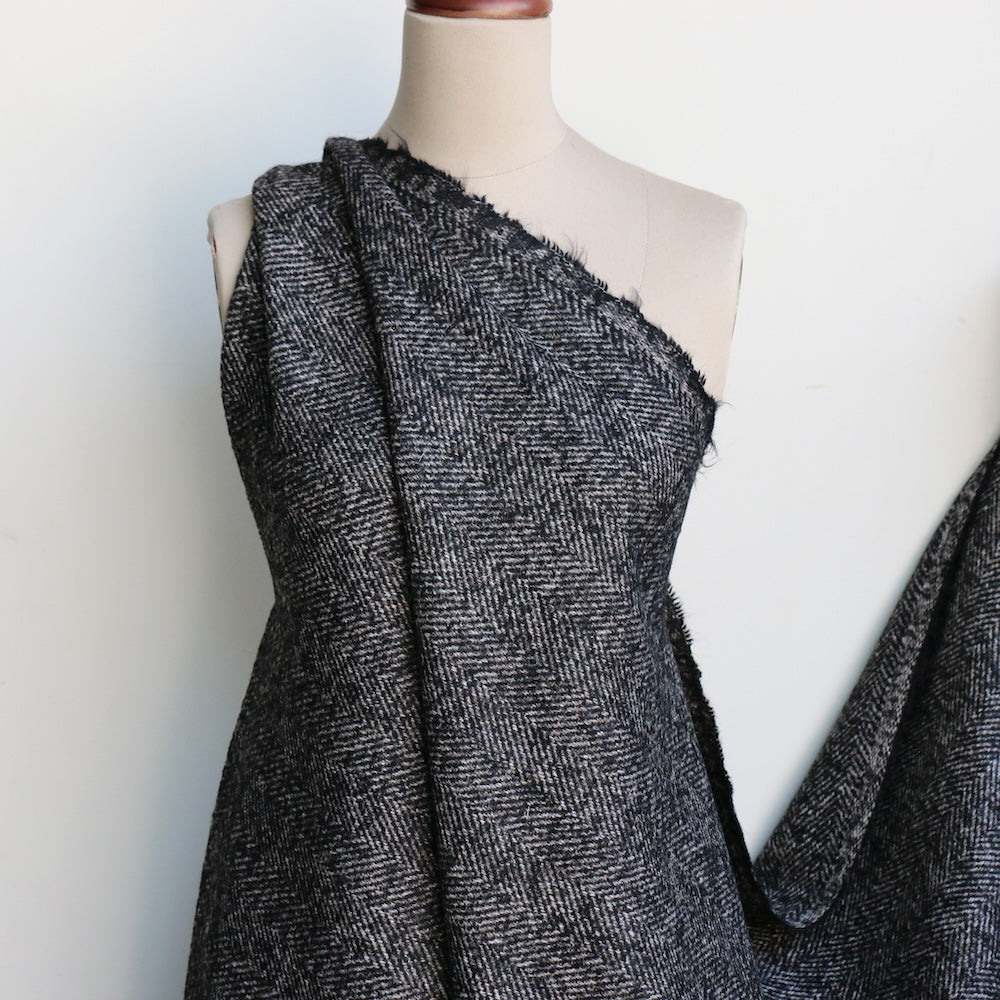 Italian designer black/grey herringbone 90% wool 5% mohair 5% alpaca