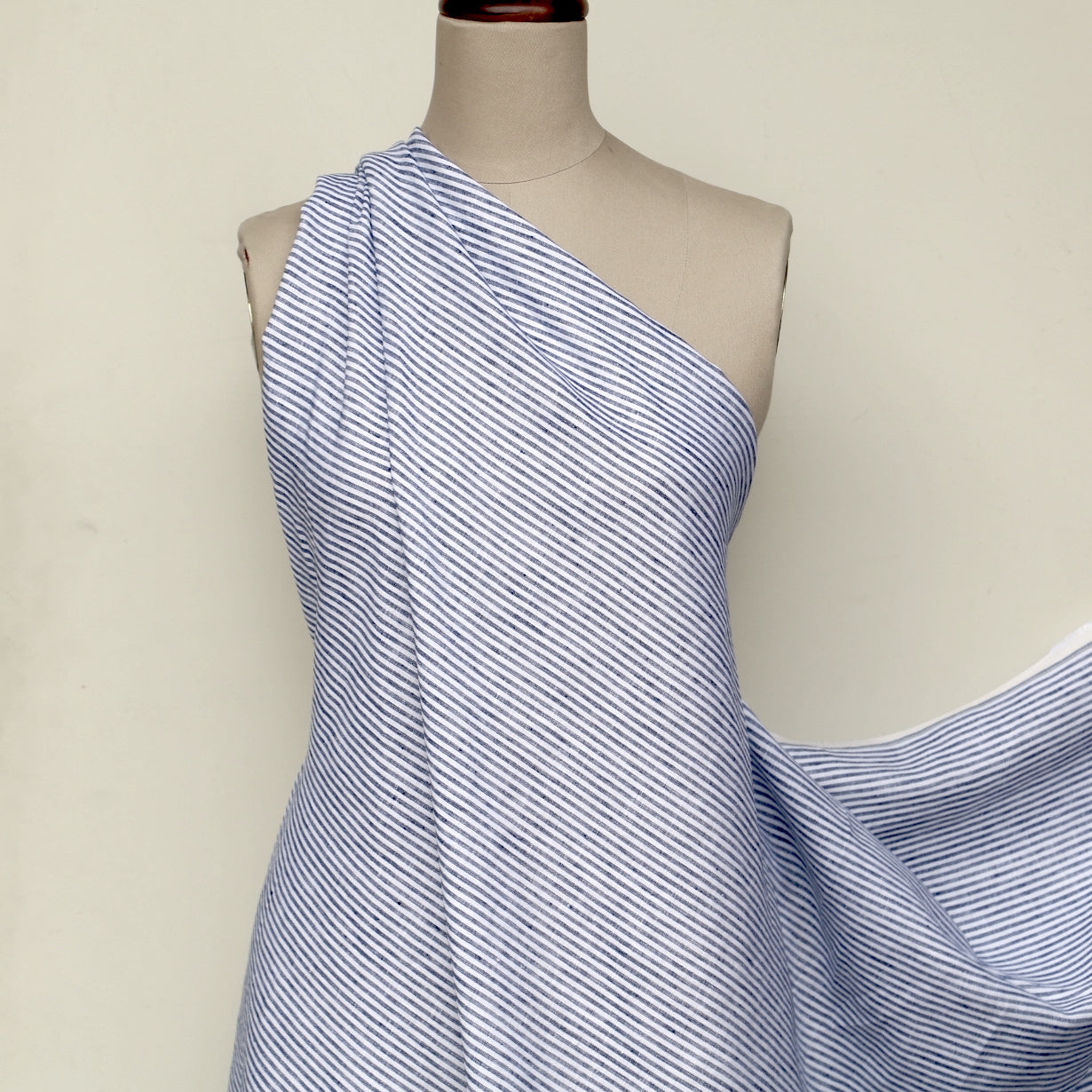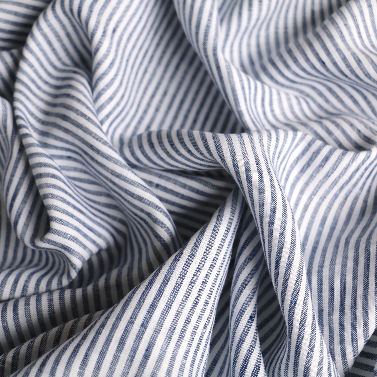 Fine striped navy/white 100% linen