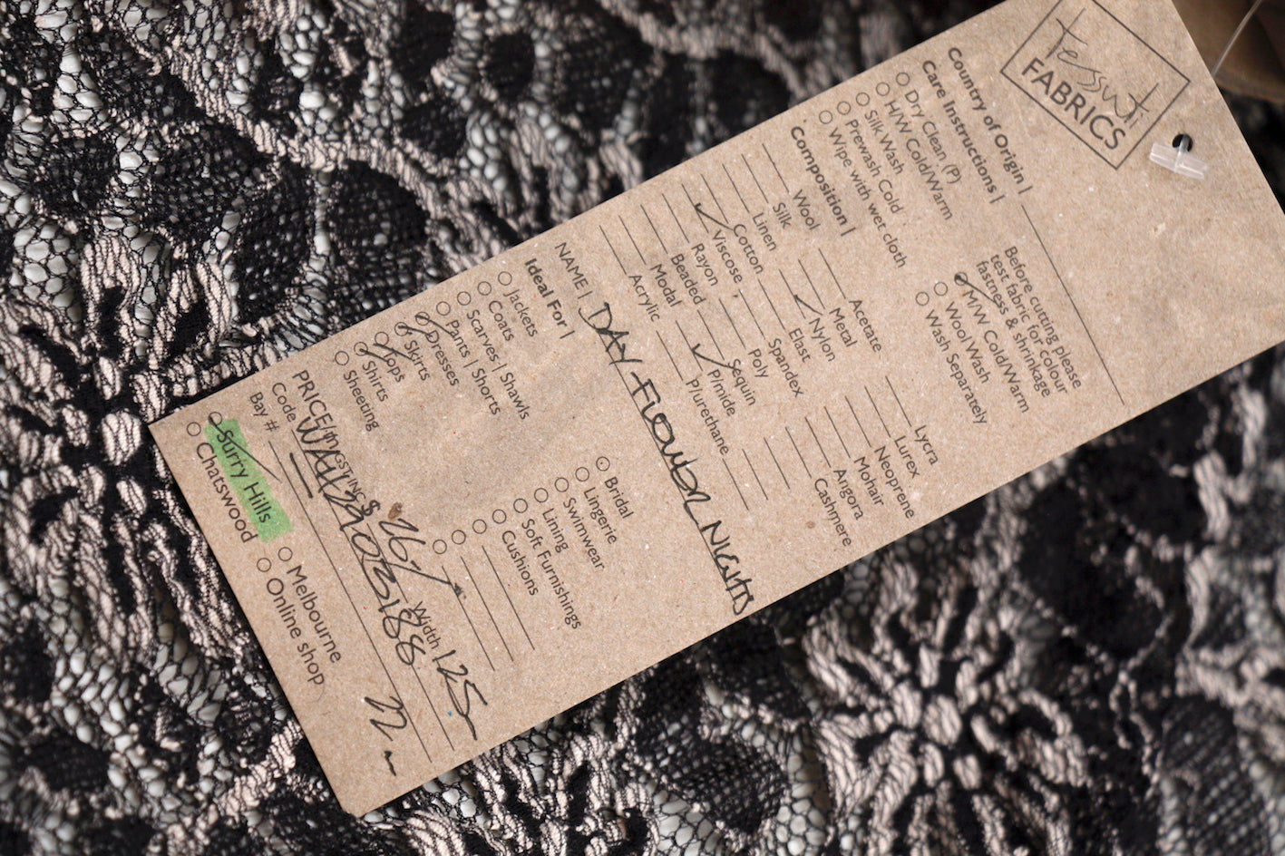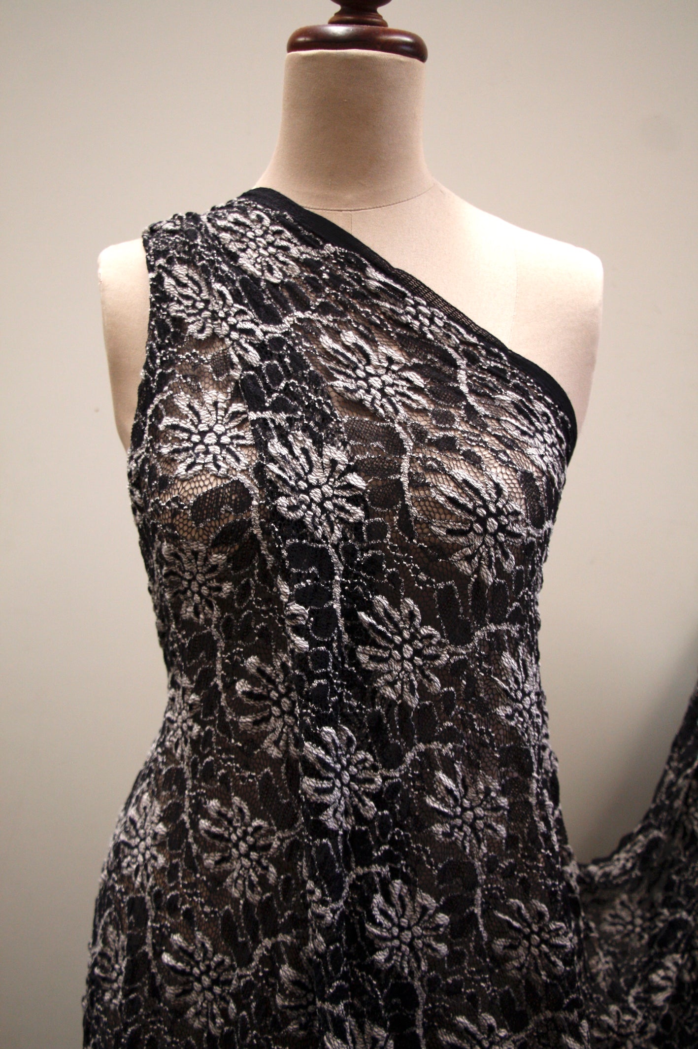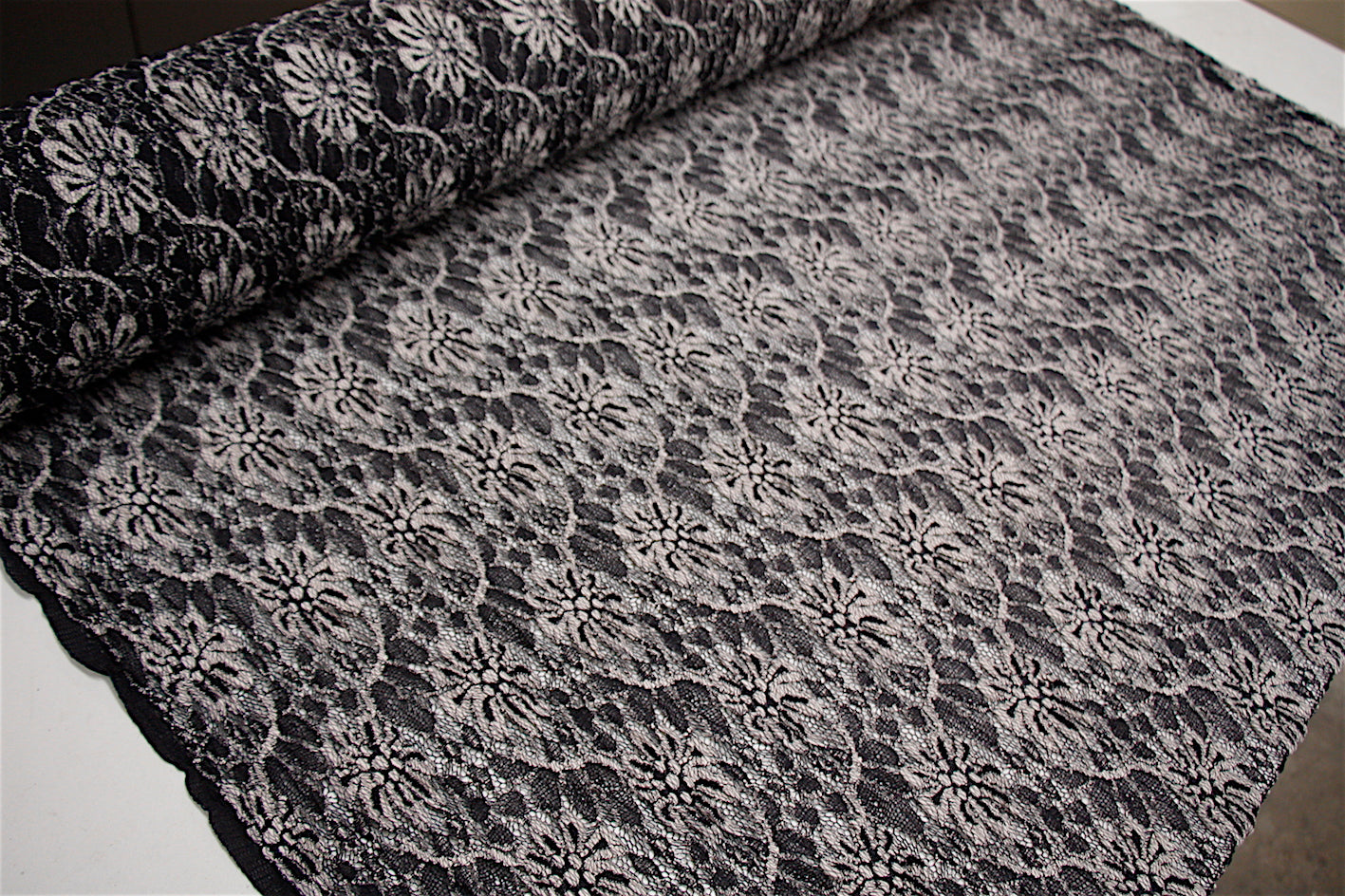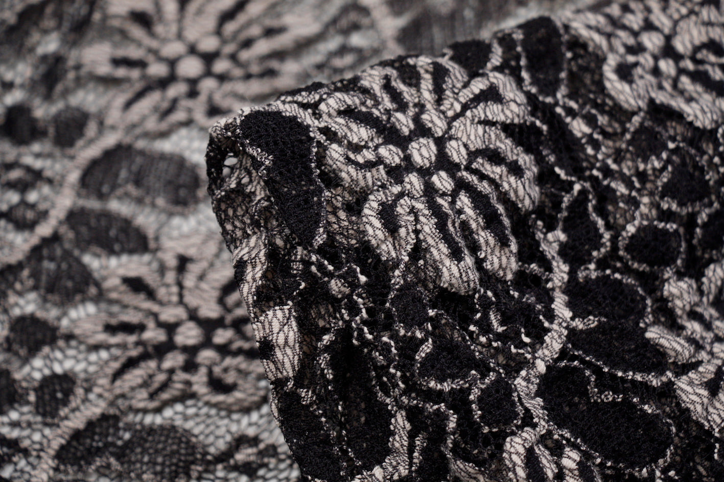 Black/sand viscose/polyester/polyamide stretch lace. Width:125cm