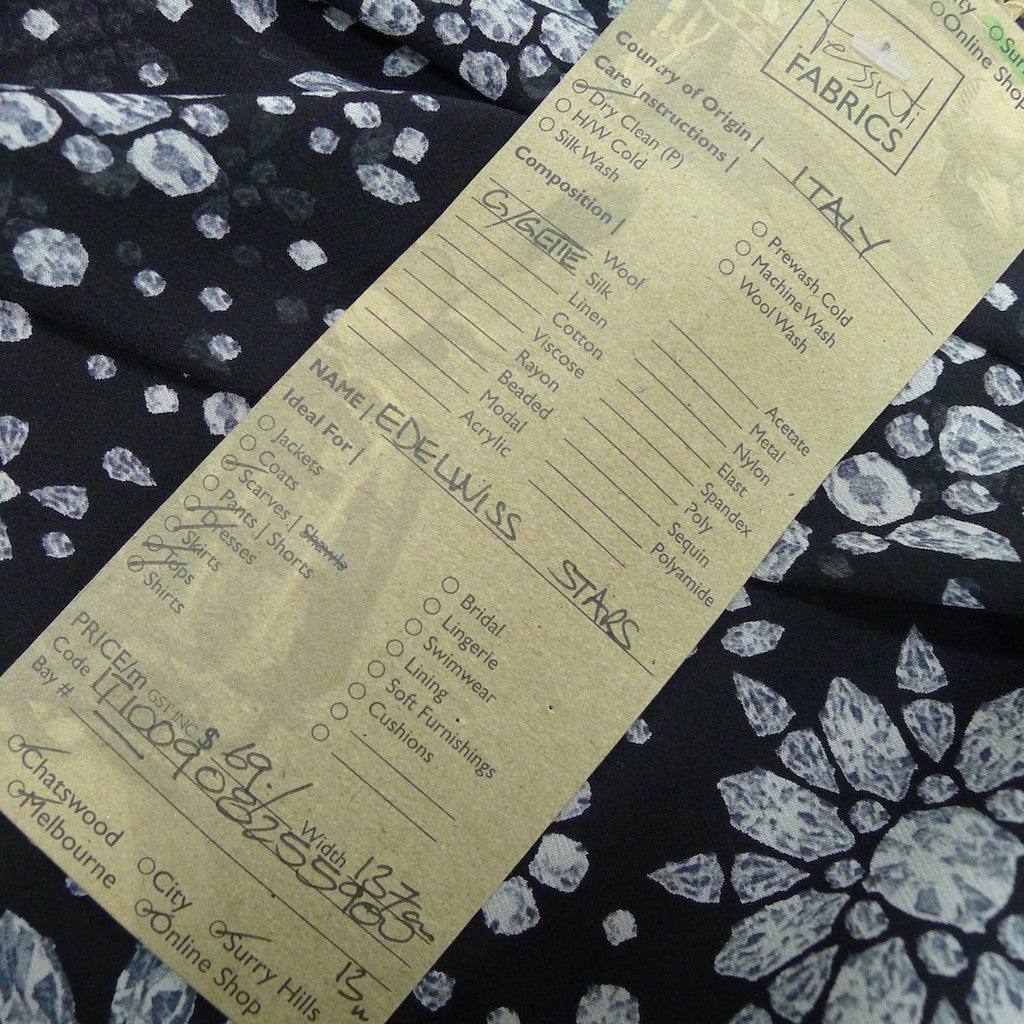 Italian designer 100% Georgette Silk. Width: 140cm.