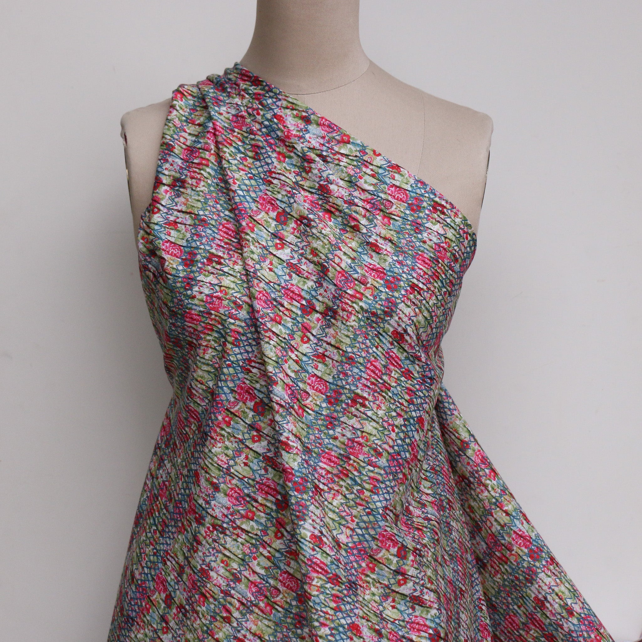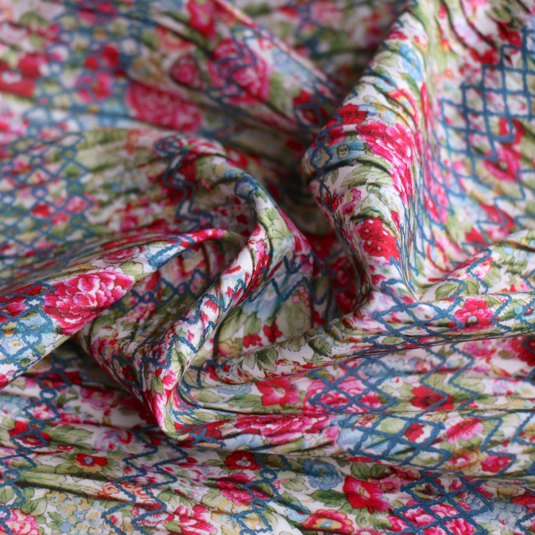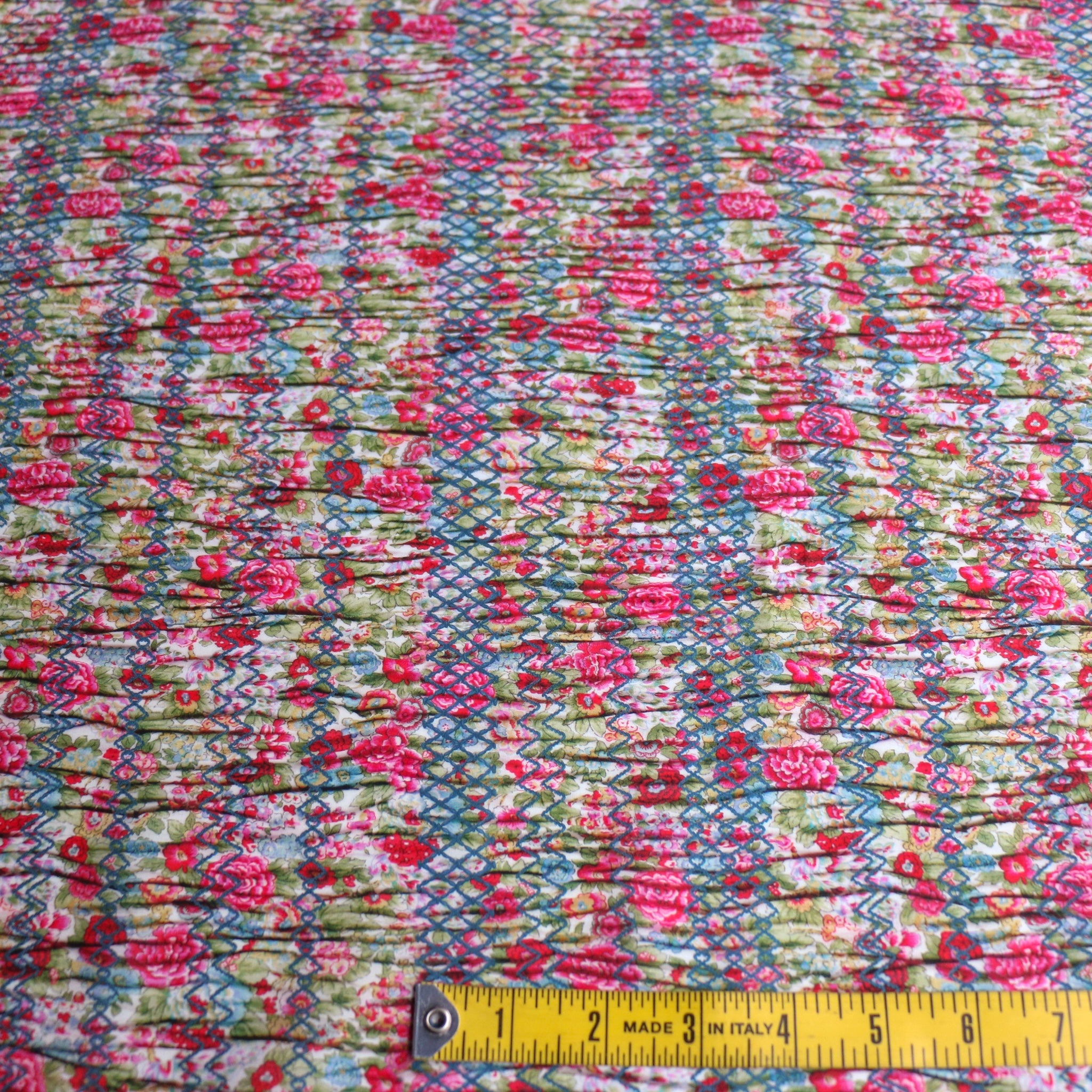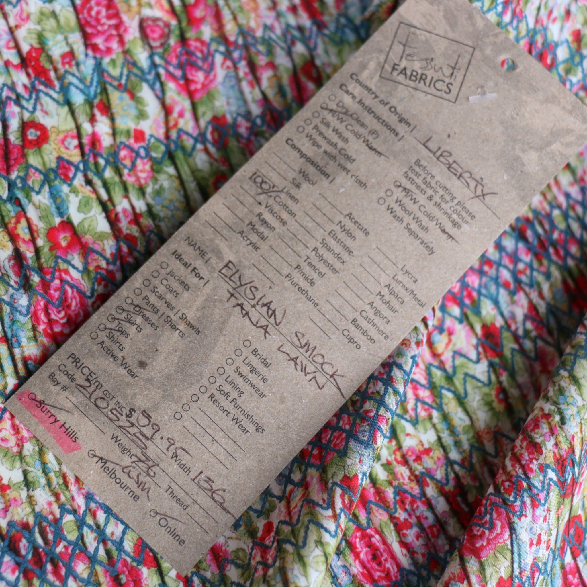 Looking back to Liberty's 1887 childrenswear department and the enduring charm of smocked dresses from that era, this unusual pattern is a fresh take on our beloved classic, Elysian. Delicate diamondshaped stitches create a series of textured pleats and folds, creating the illusion of a beautifully nostalgic floral fabric gathered into a garment.