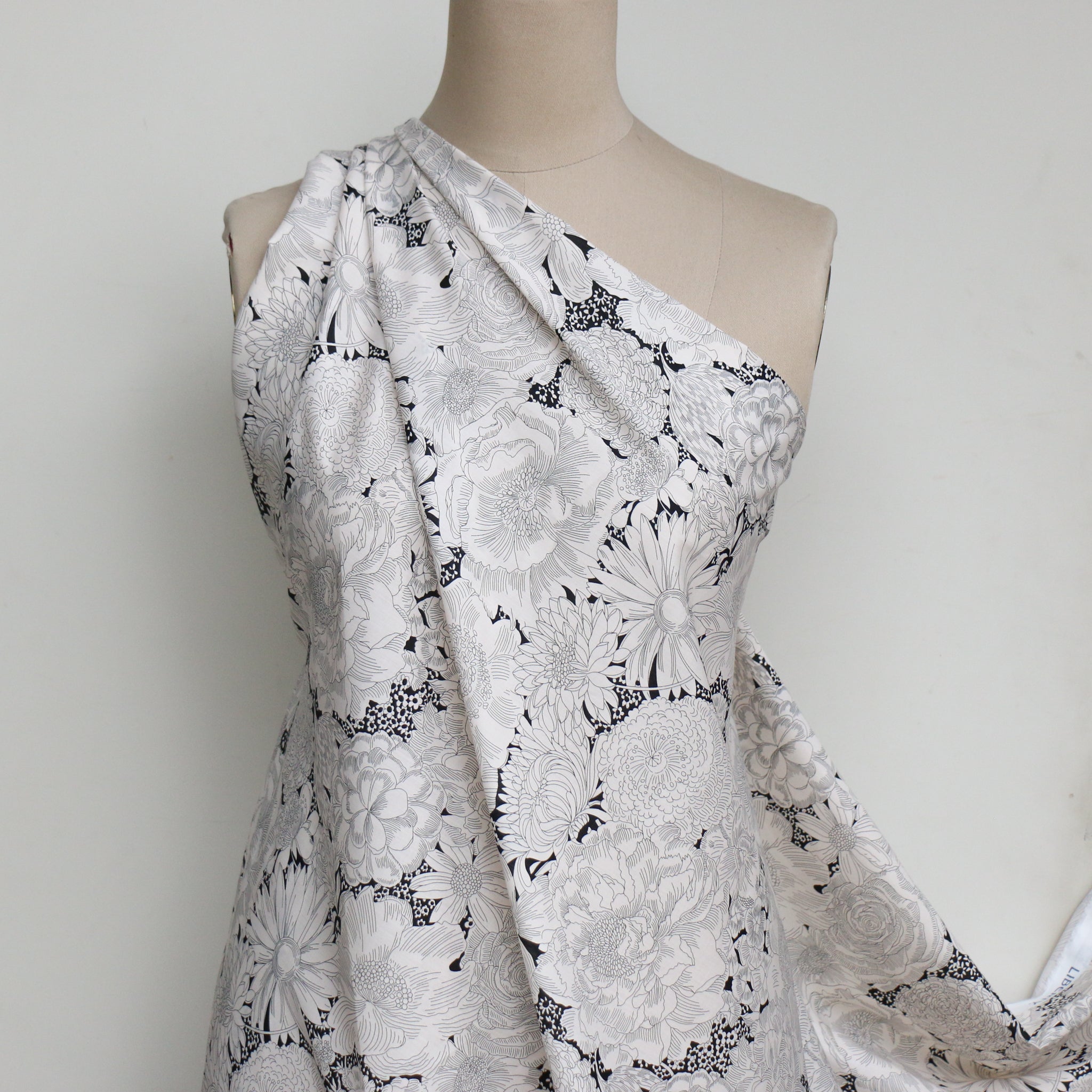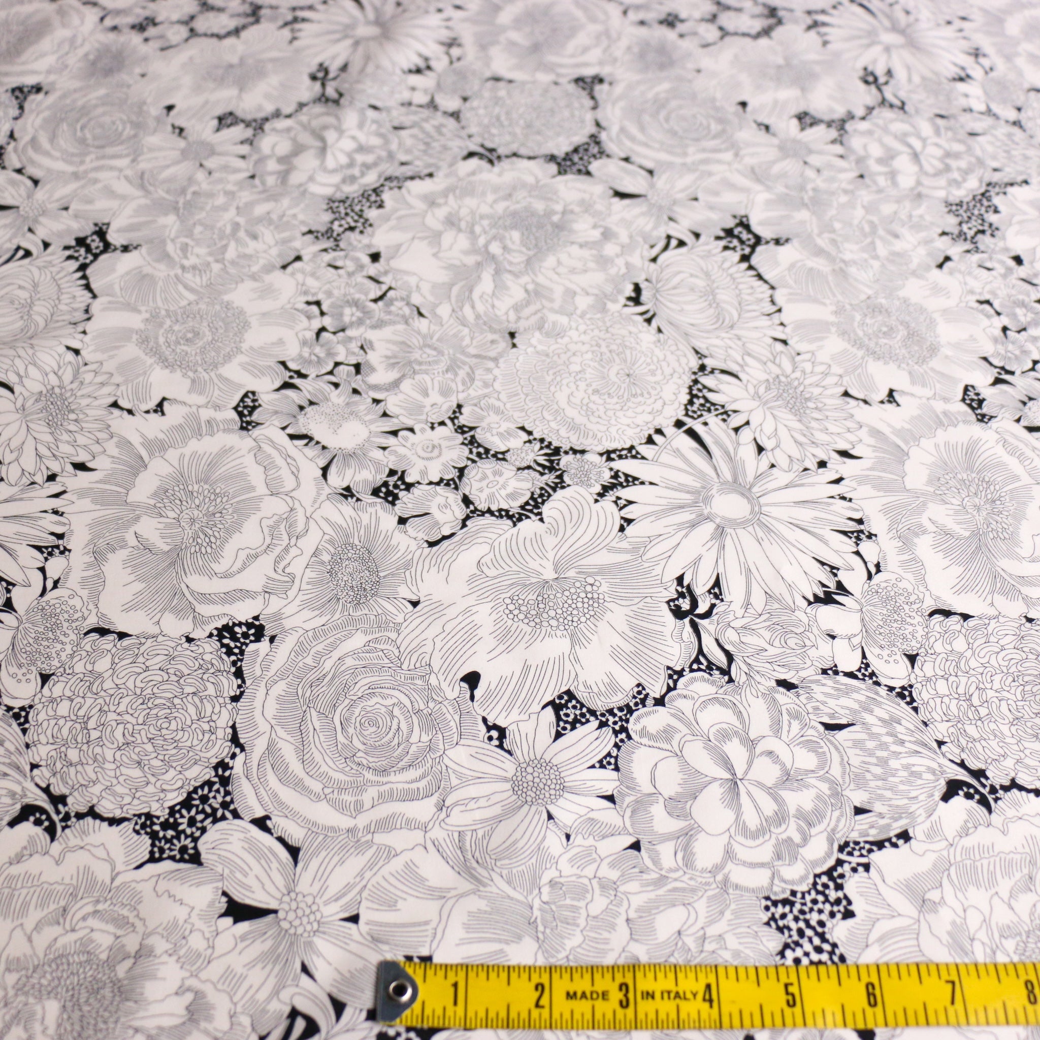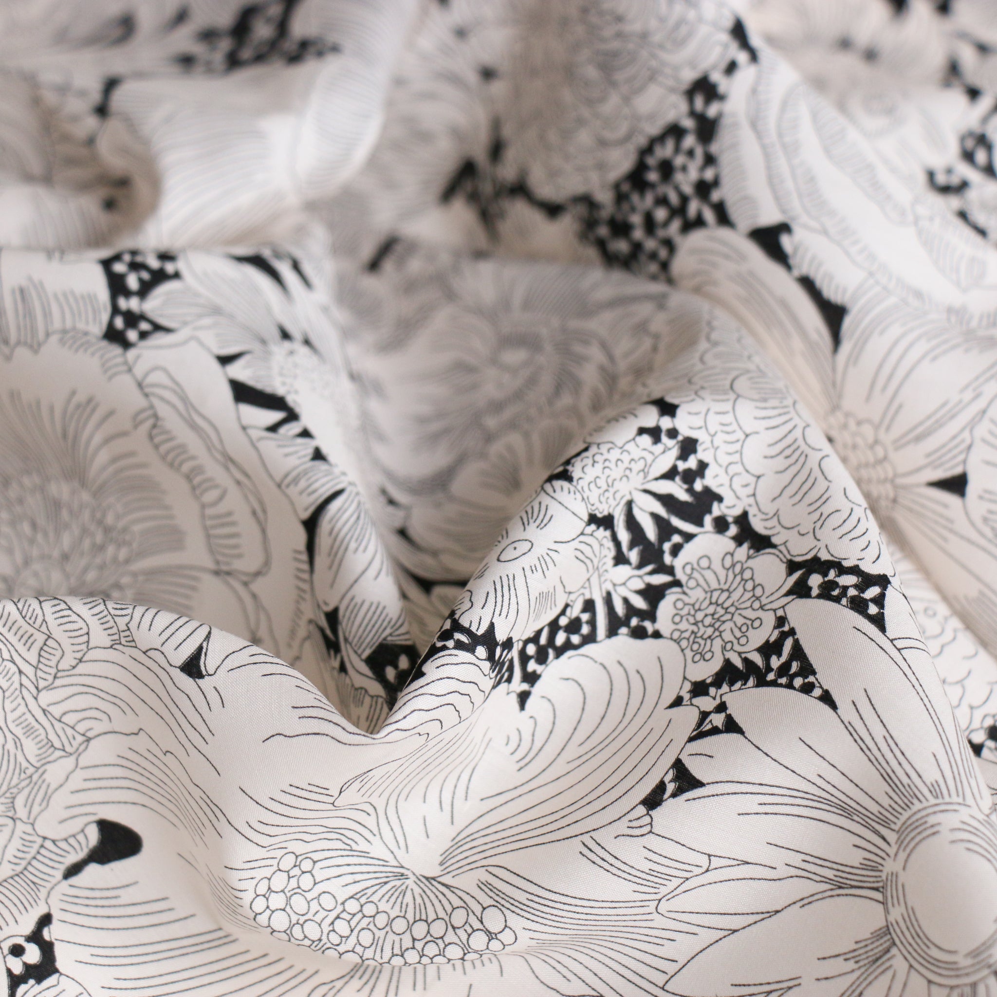 English Bloom offers a glimpse into the creative mind of Emma Mawston, former Head of Design at Liberty Fabrics, whose unwavering artistic passion defined the Liberty print aesthetic of the 2000s. Lovingly revived, her 2012 English Field pattern now appears as a low-colour version, brilliantly capturing her signature style of hand-drawn, intricate florals. The design showcases dramatic large-scale daisies, sunflowers, roses, chrysanthemums, poppies, tulips, and dahlias, each delicately outlined to unveil a rich botanical tapestry.