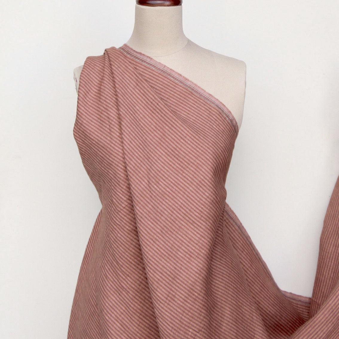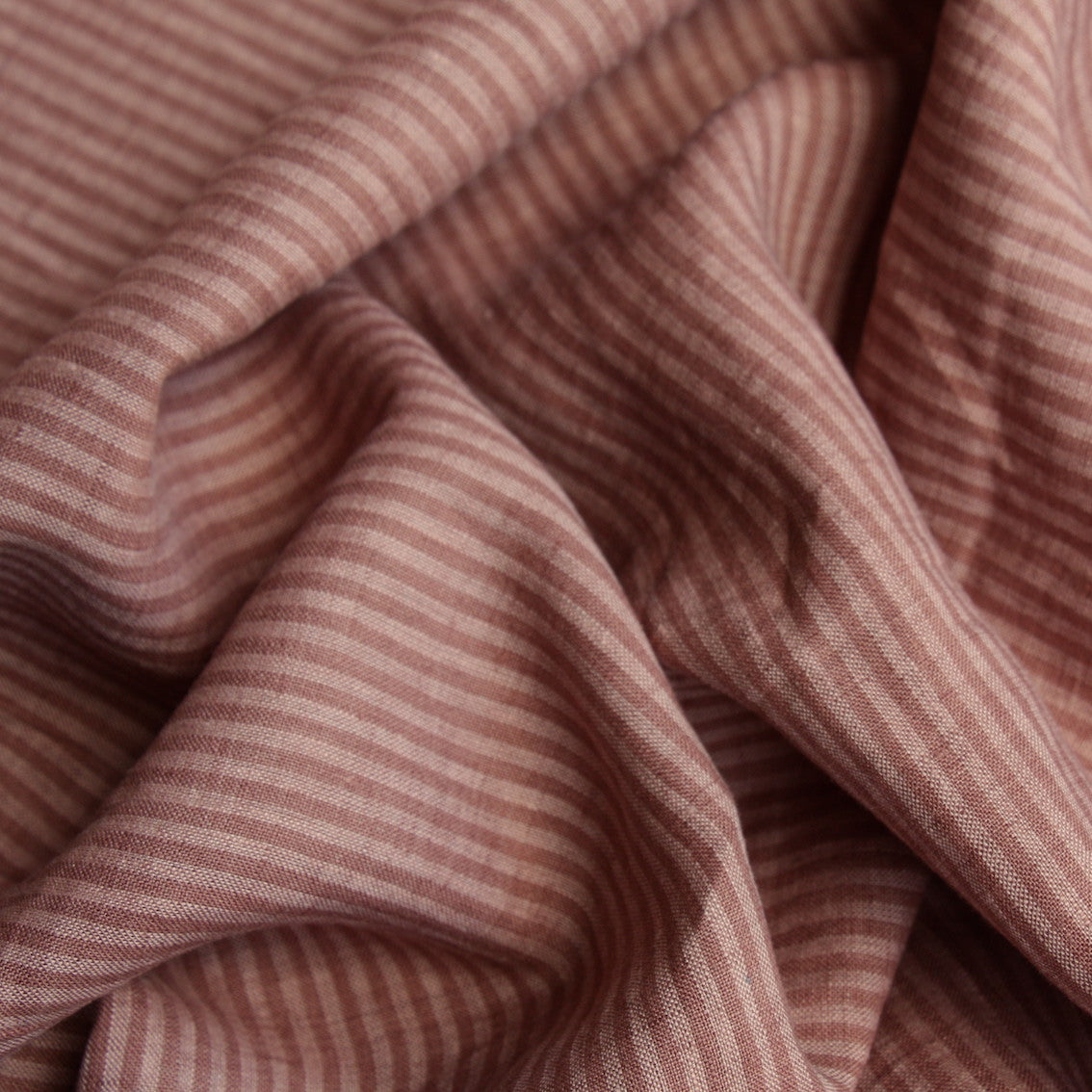 Fine striped clay/mocha 100% linen