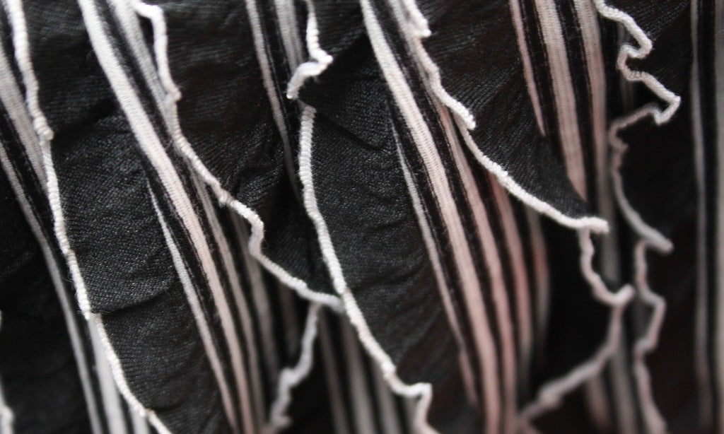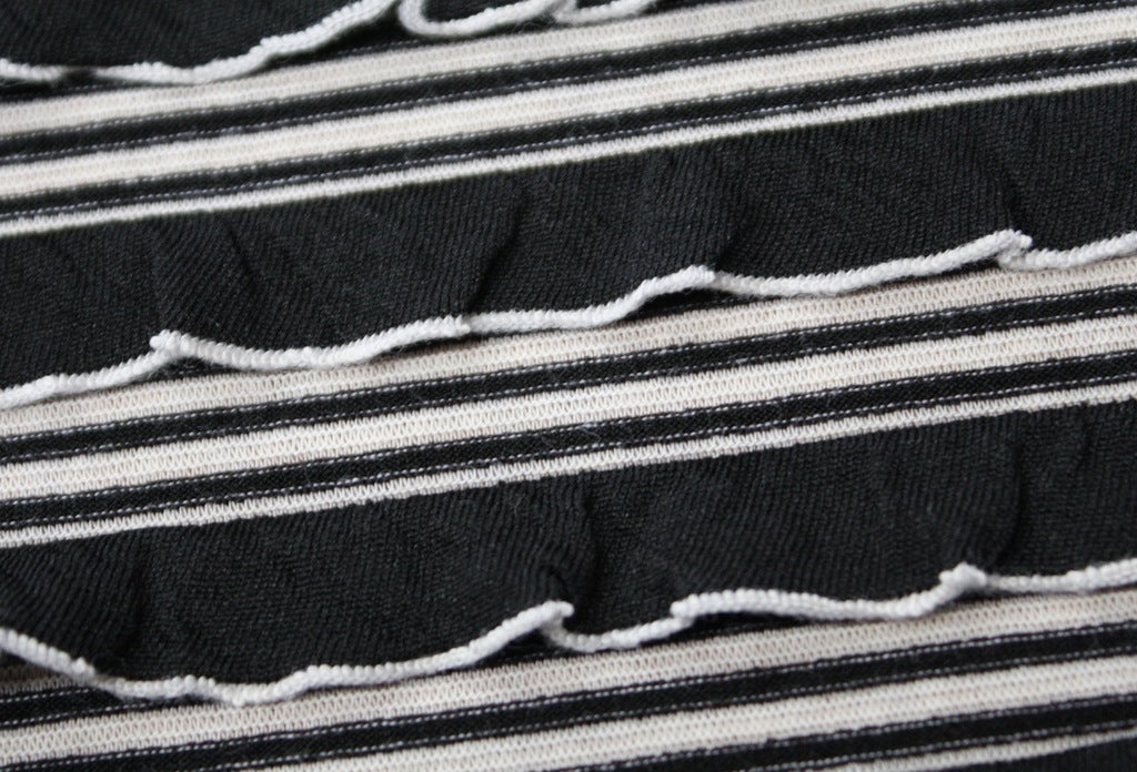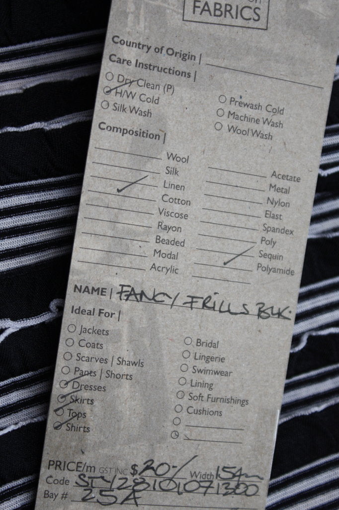 Fun black and white frills perfect for dresses,skirts and tops. 150cm wide.