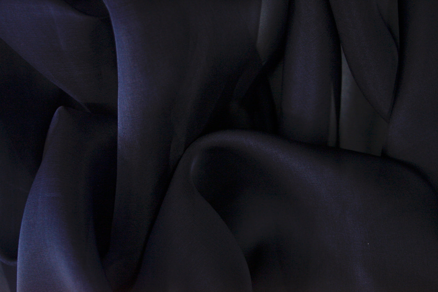 French navy 100% silk organza. Width:137cm Weight:6mm