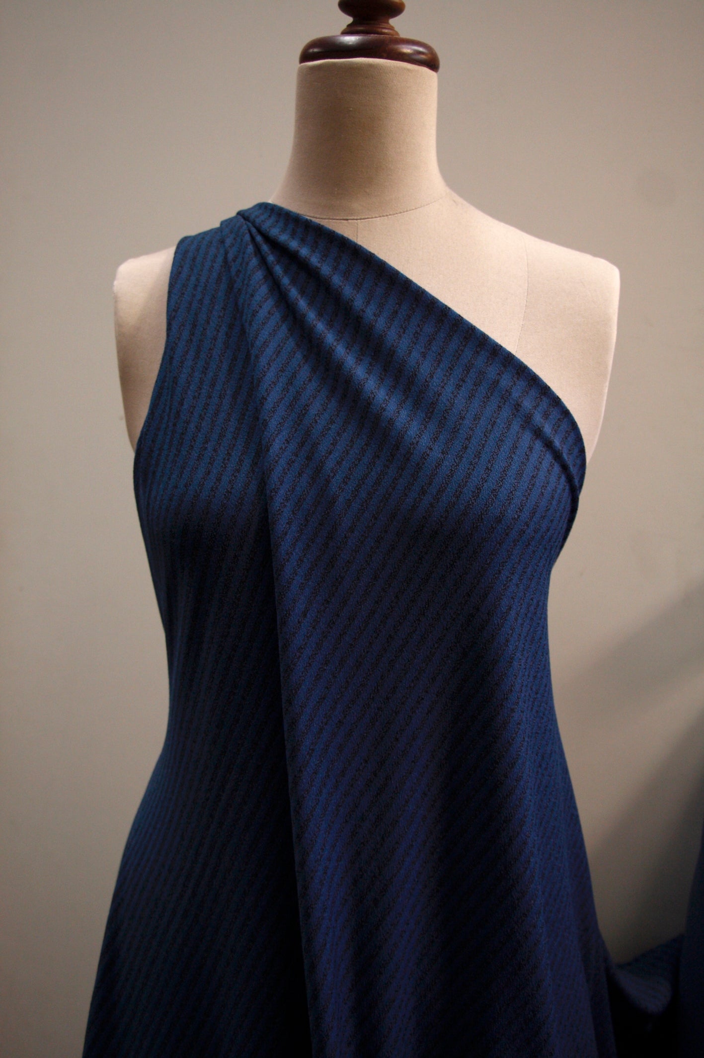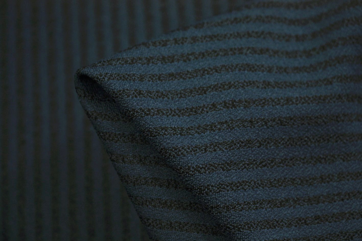 Quality teal/charcoal striped 60% polyester 25% viscose 15% elastane stretch knit. Width:138cm