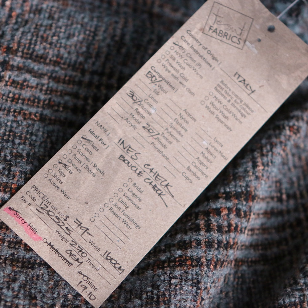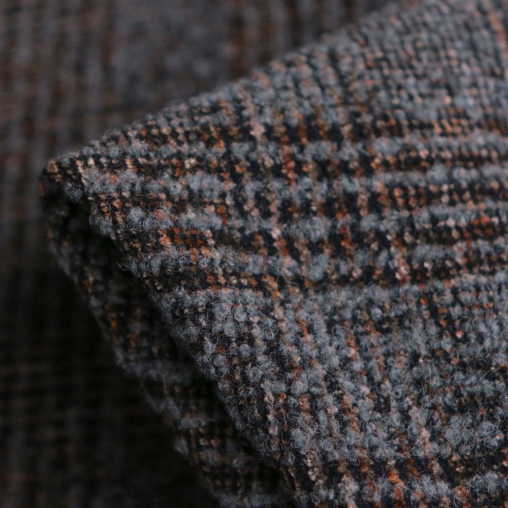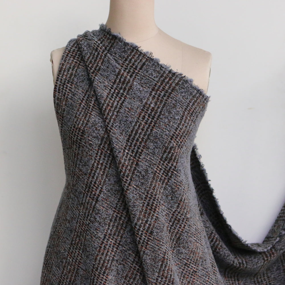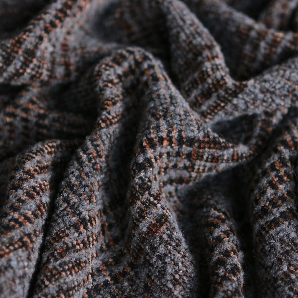 Italian grey/black/walnut checked boucle 50% wool 30% viscose 20% polyamide
