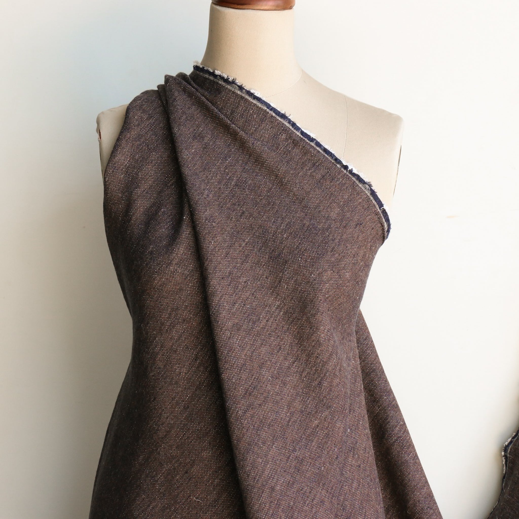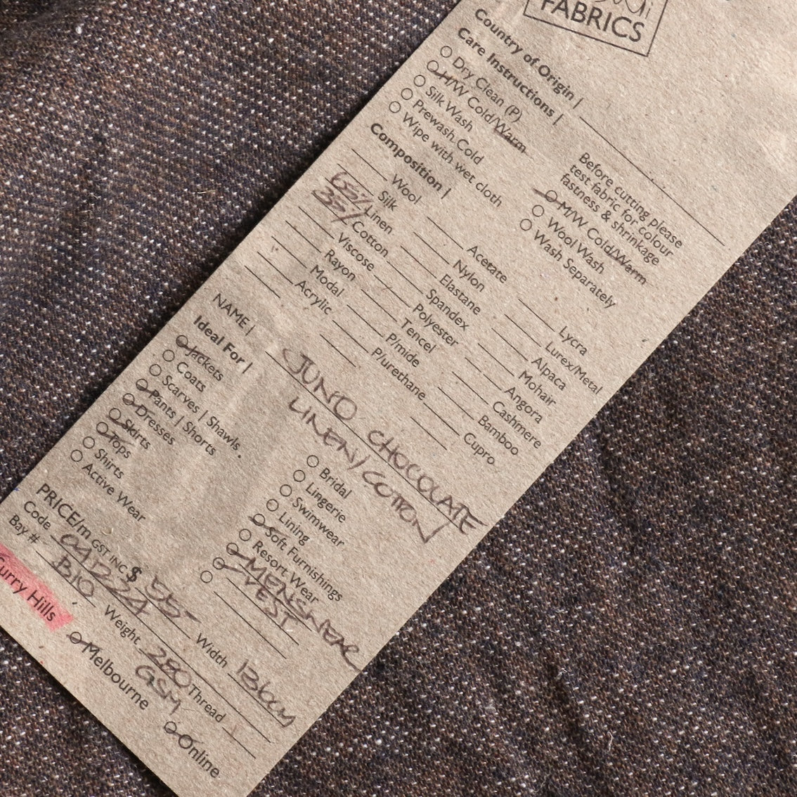 Chocolate yarn-dyed washed textured 55% linen 45% cotton with ecru backing.