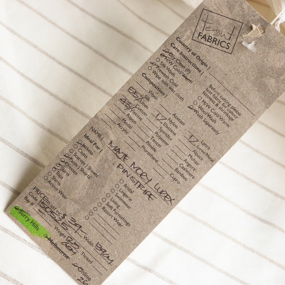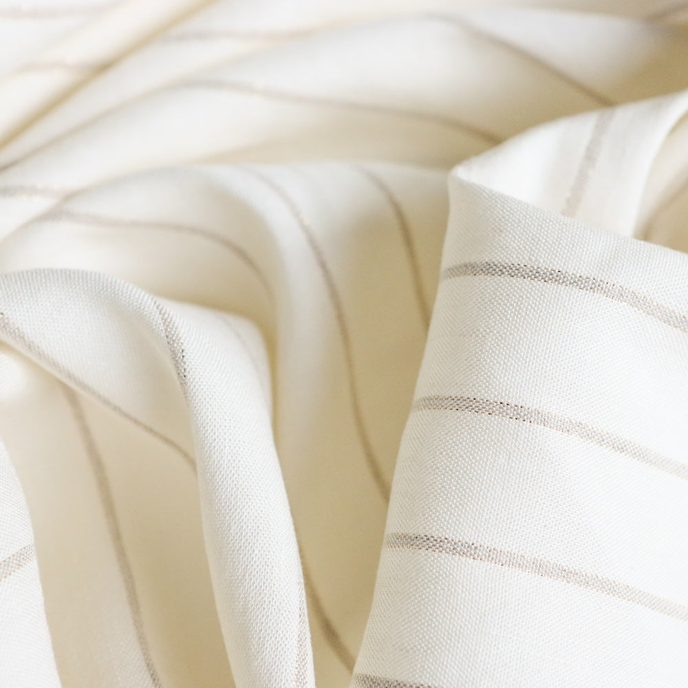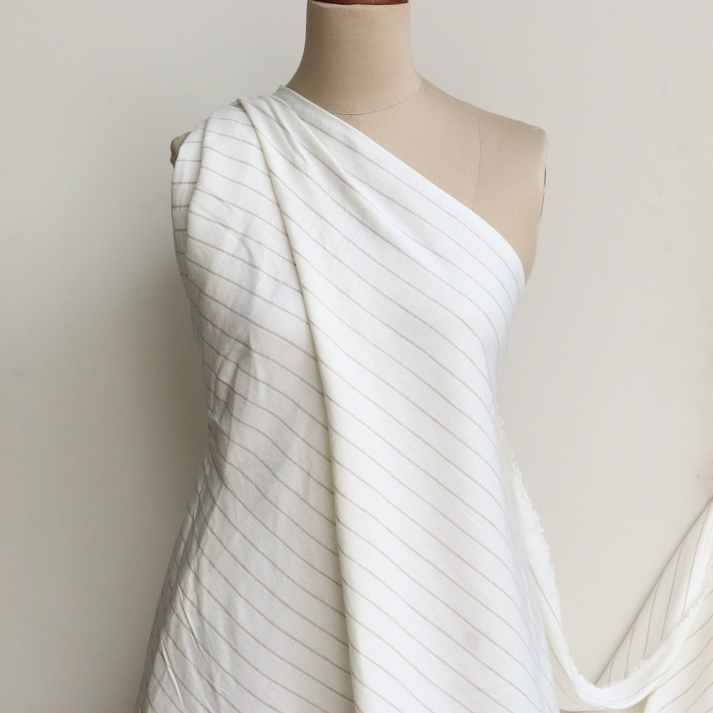 Designer ivory/silver lurex striped 55% linen 43% viscose 1% lurex 1% elastane stretch woven