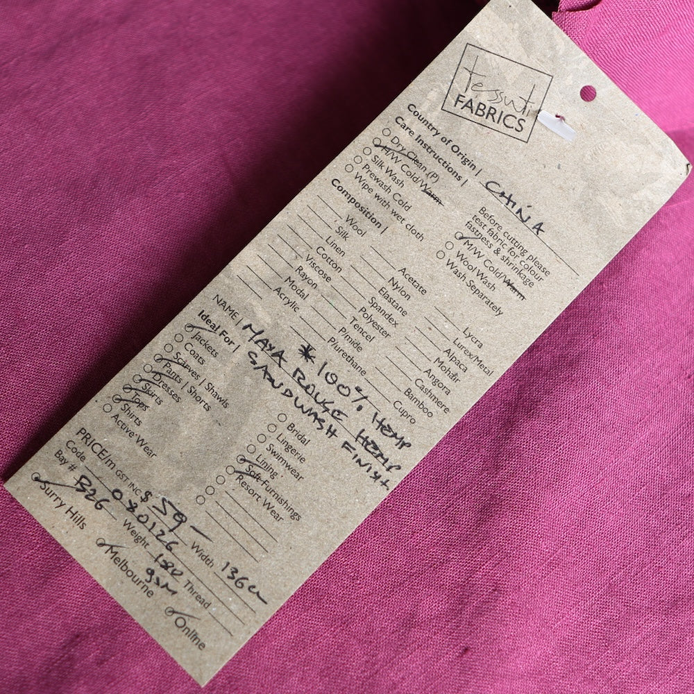 Rouge 100% hemp with sandwashed finish