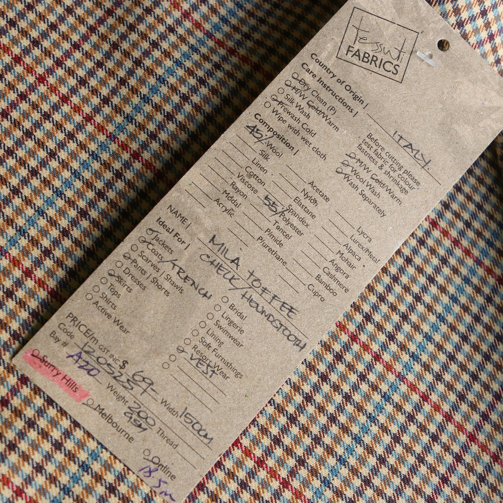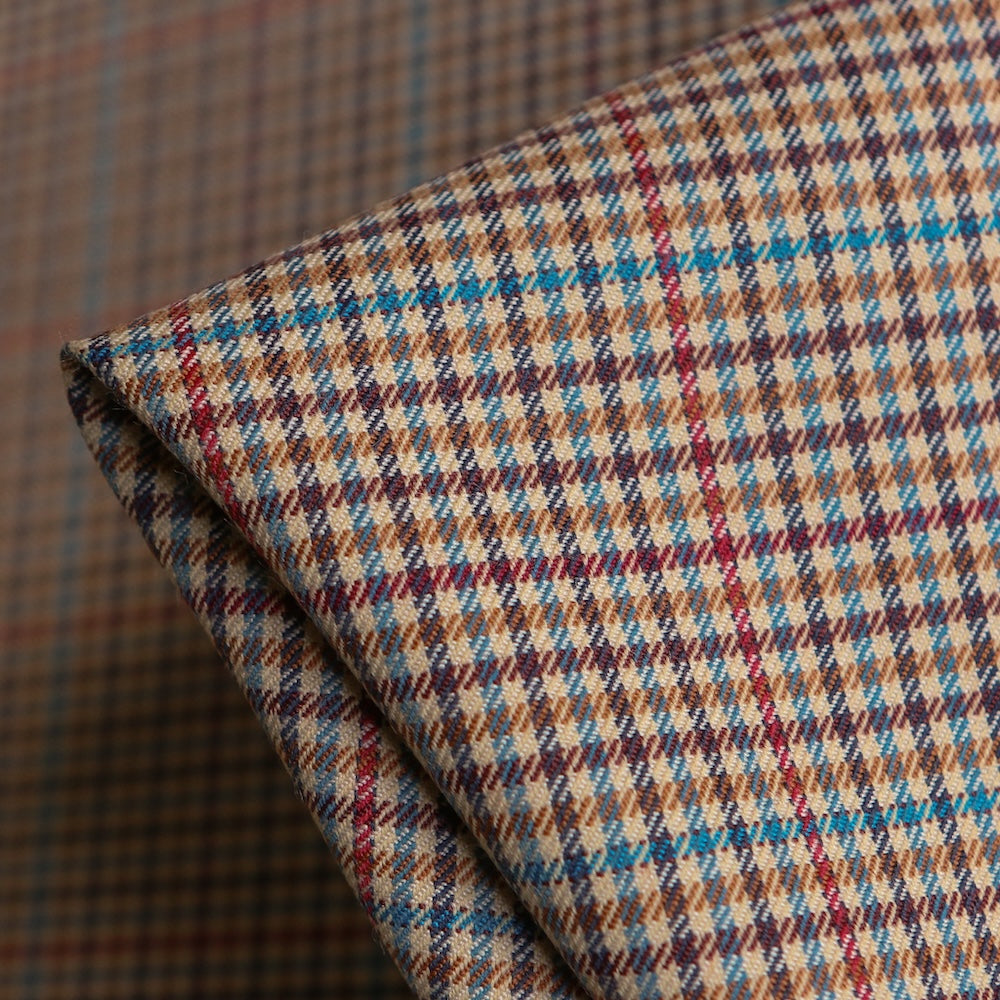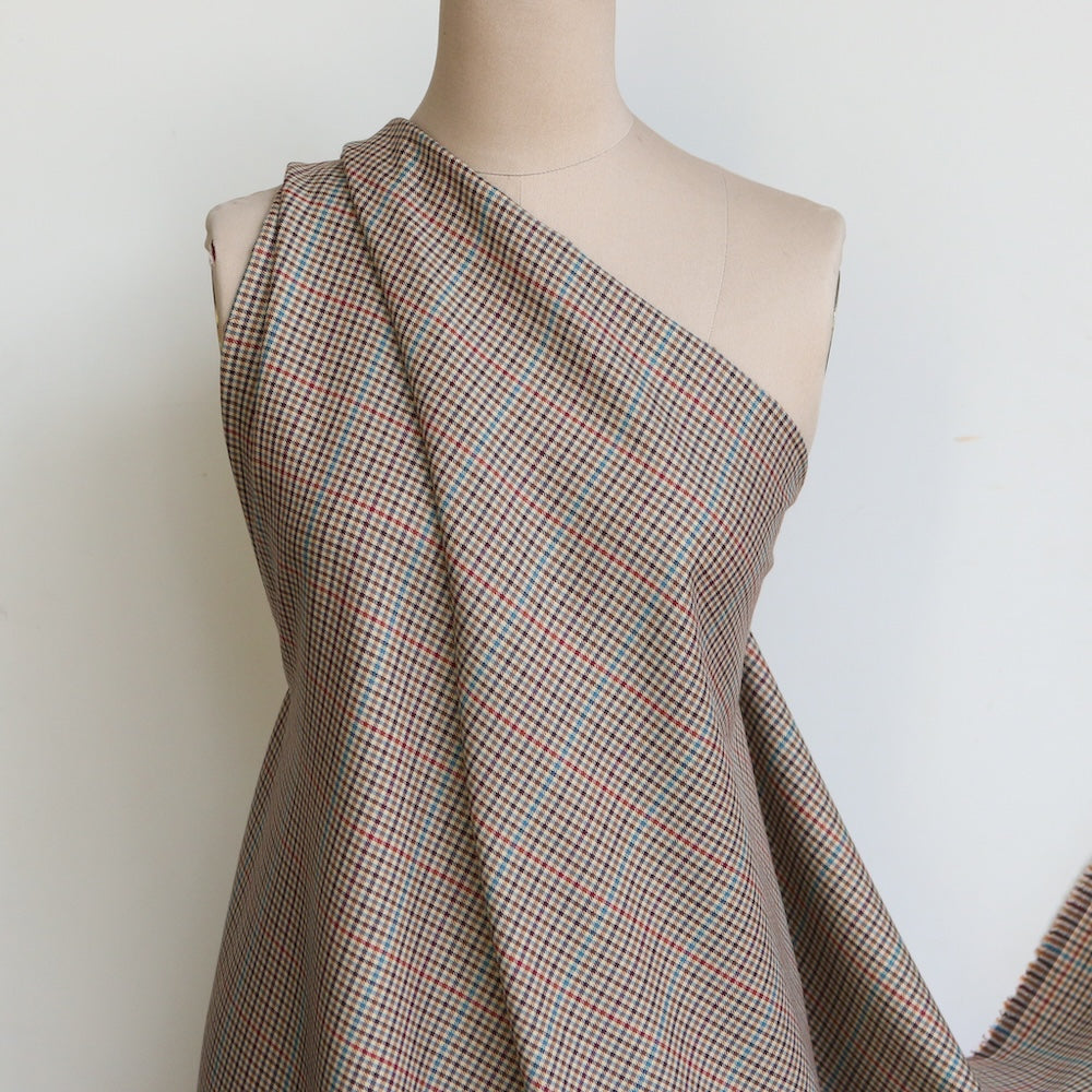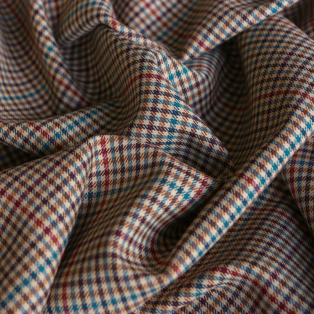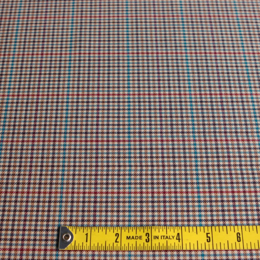 Italian brown/blue/tan/cherry checked 55% polyester 45% wool