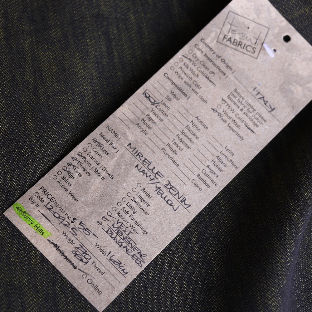 Italian dark navy/yellow 100% cotton denim