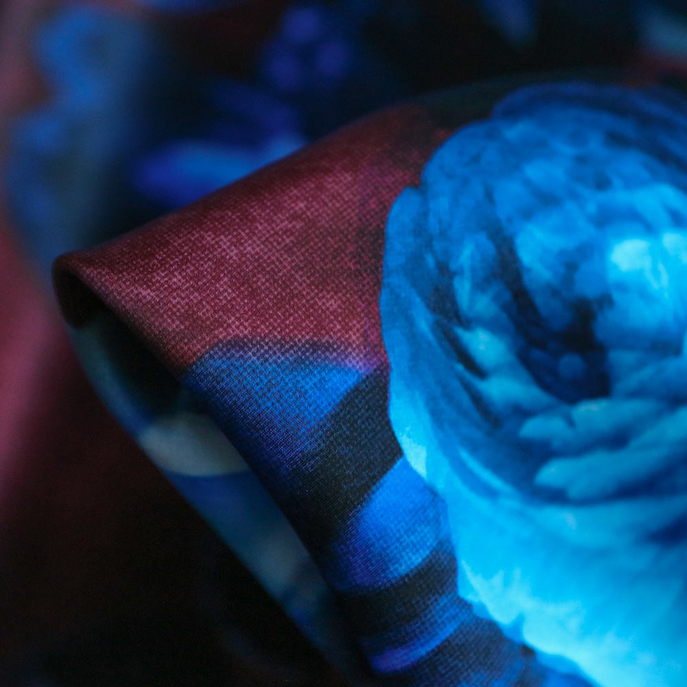 Featuring a variety of digitally manipulated rose motifs, Moon Rose captures the