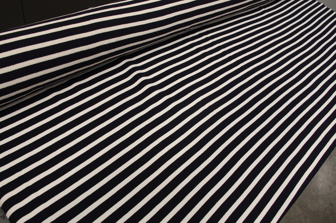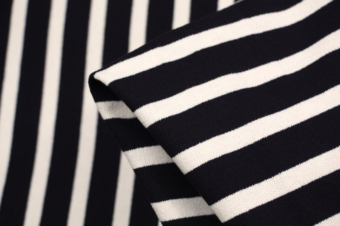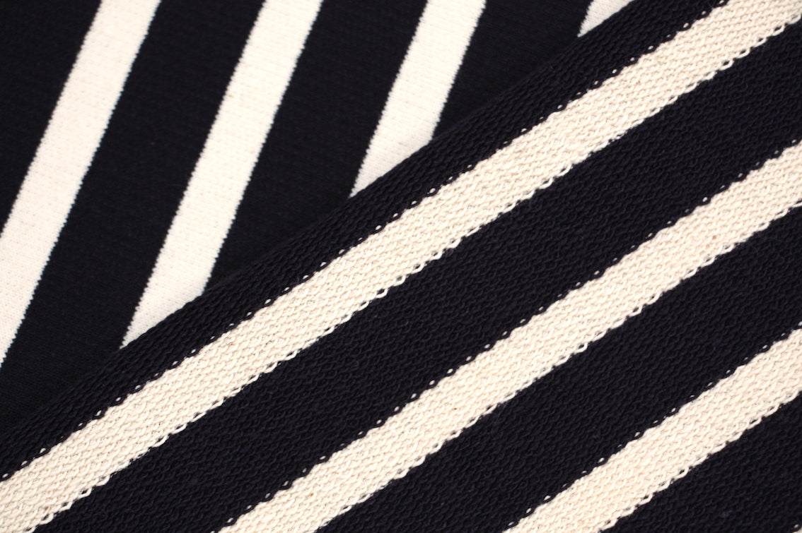 Quality Japanese black/off white striped 100% cotton french terry knit.