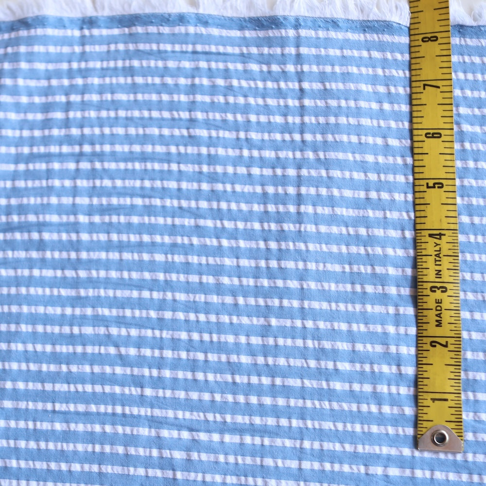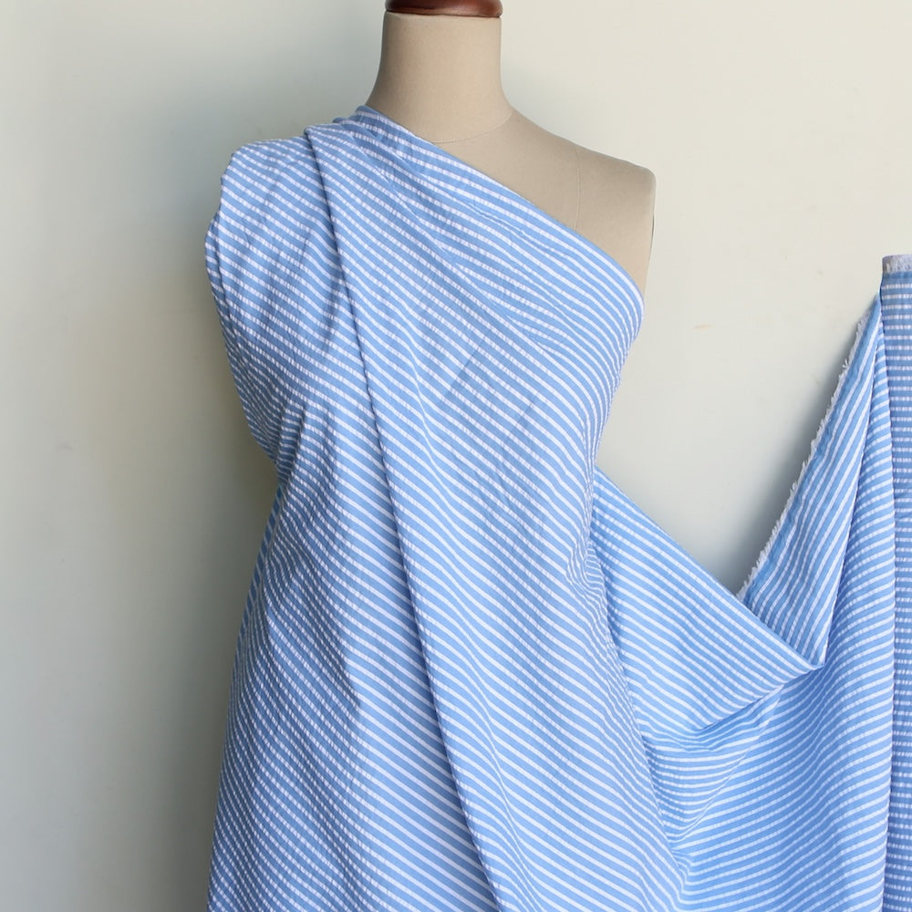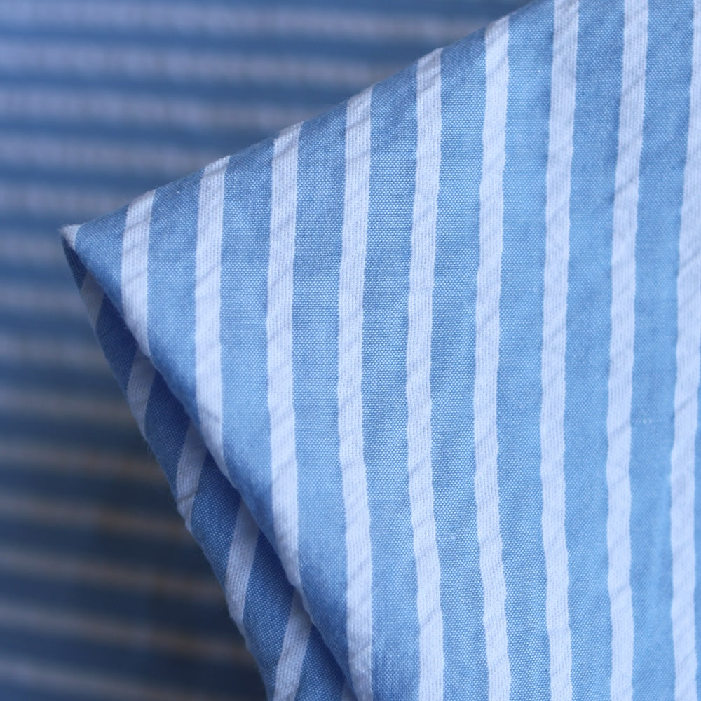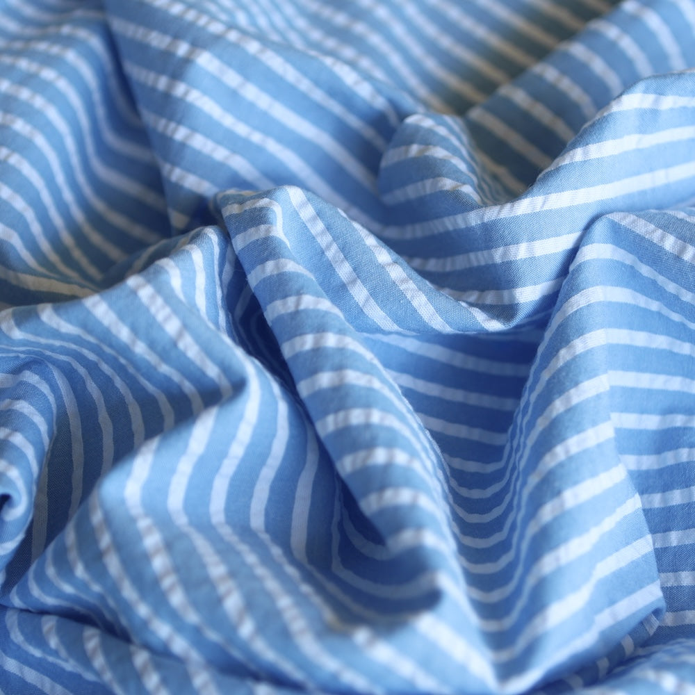 Blue/white striped 100% cotton seersucker