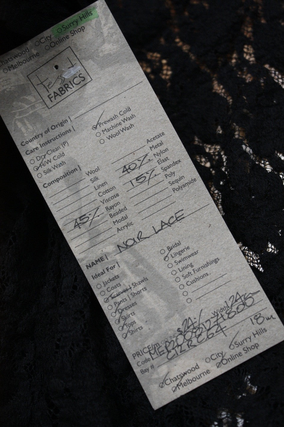 Black stretch lace suitable for cardigans, dresses, skirts, tops etc