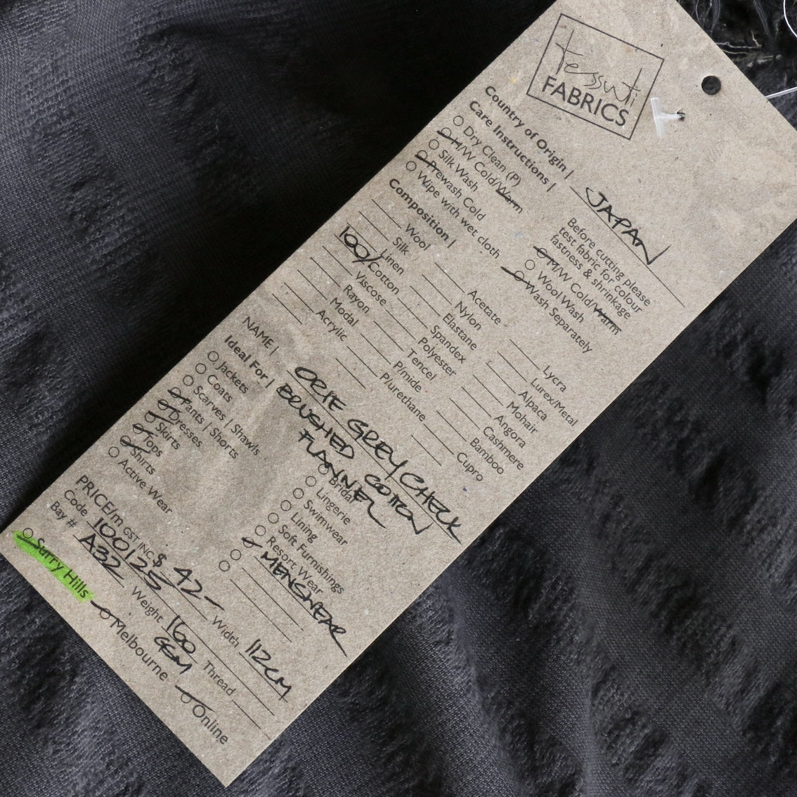 Japanese black/grey fine checked brushed cotton flannel