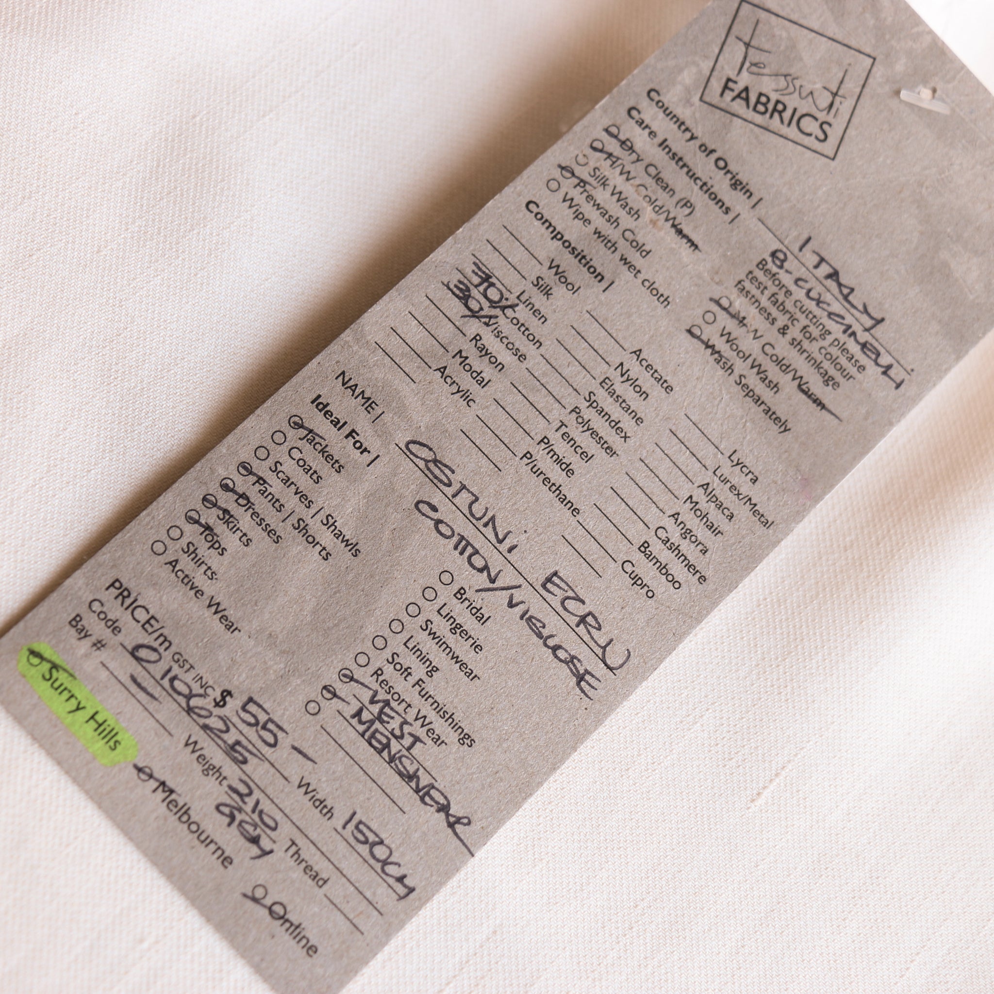 This medium weight cotton/viscose blend is ideal for jackets, menswear, vests, pants/shorts, shift dresses and skirts.
