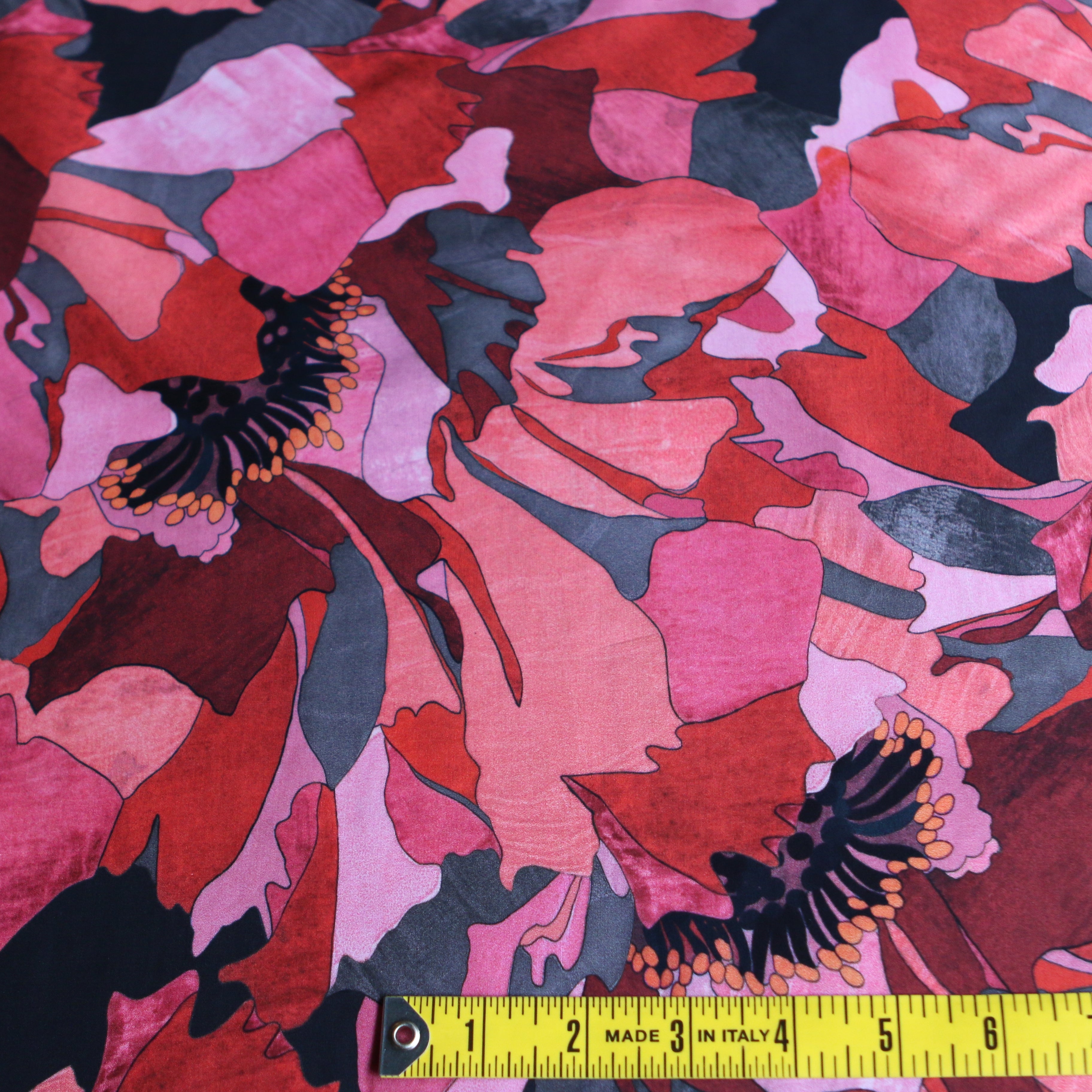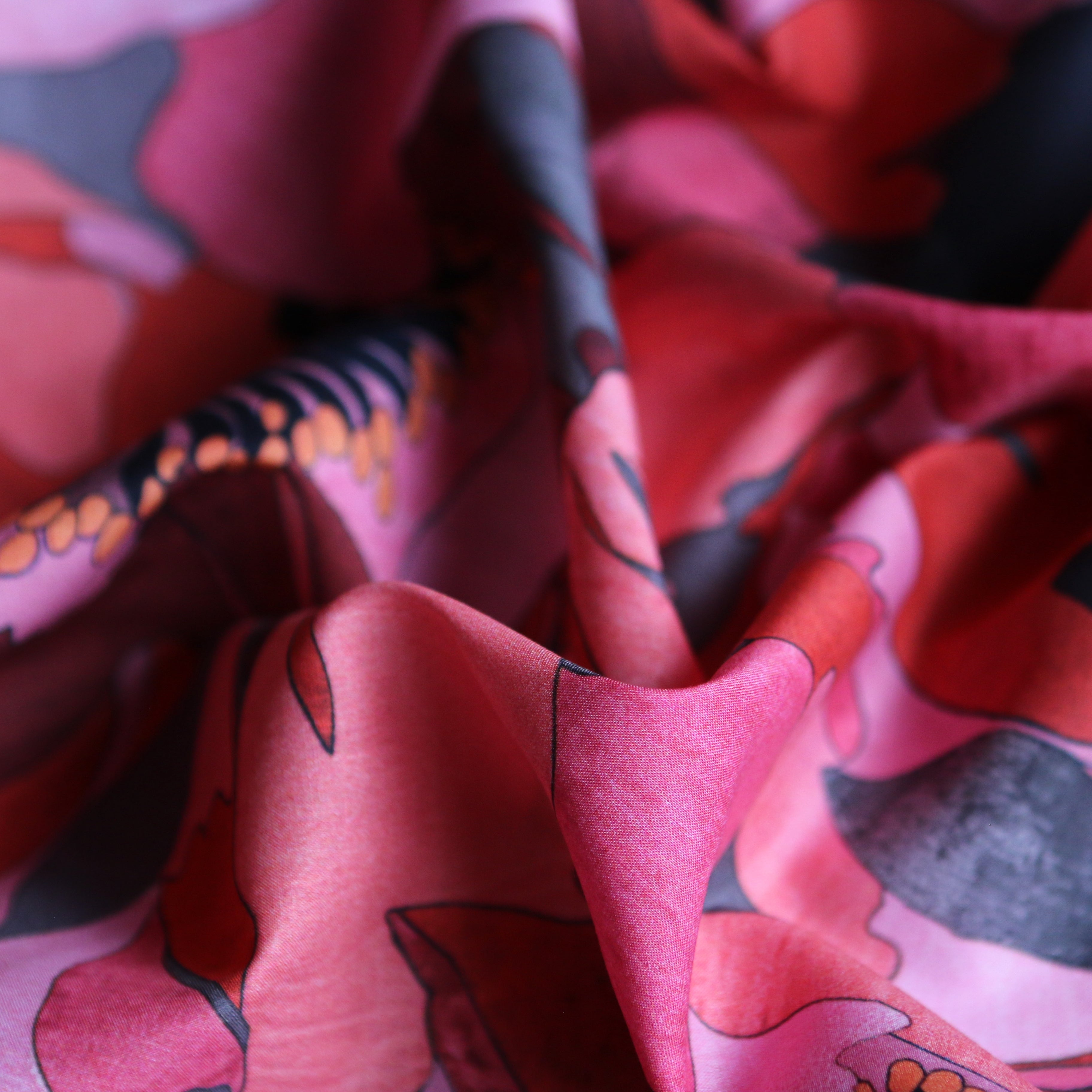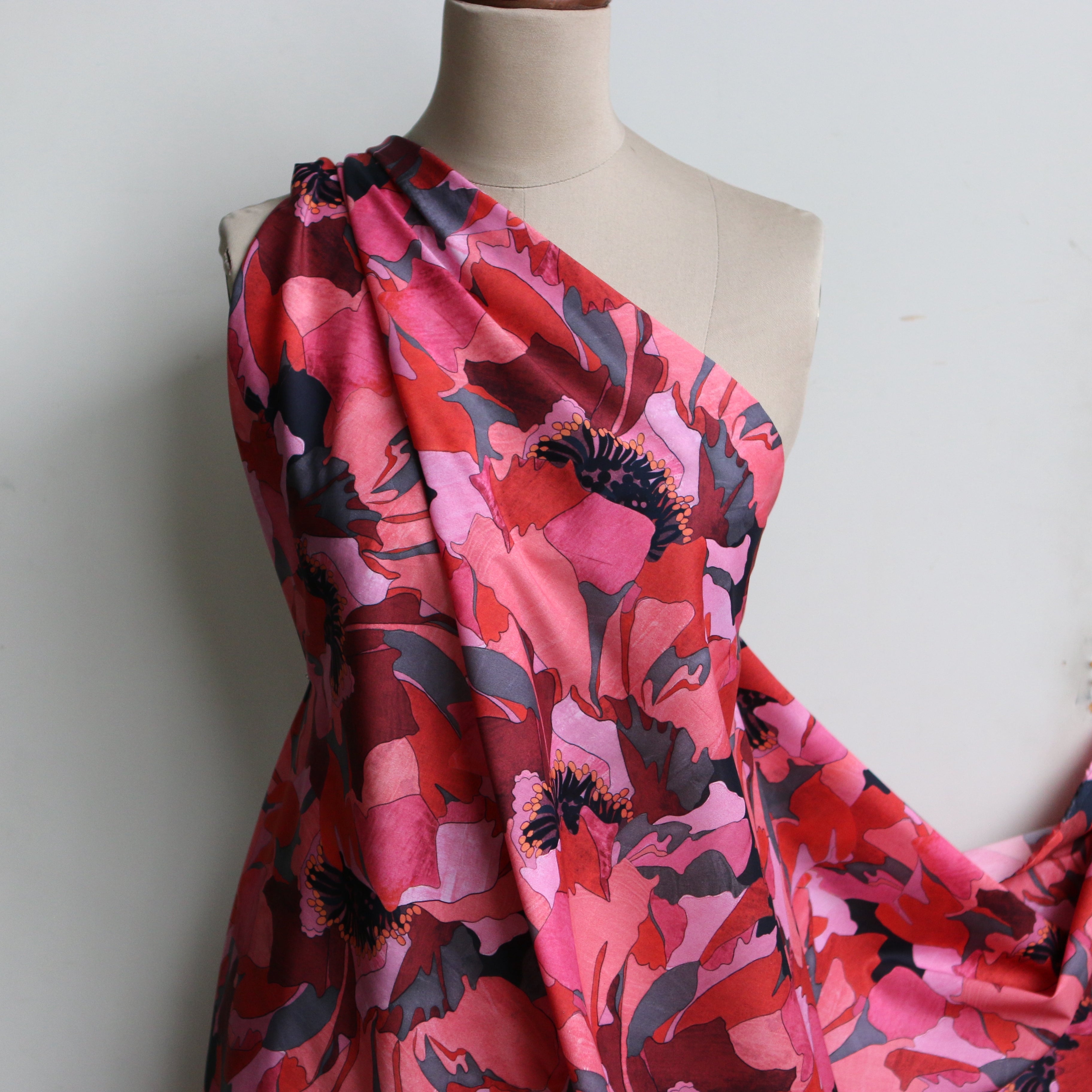Liberty Fabrics digitally printed black/coral/pink/red floral 100% cotton tana lawn™