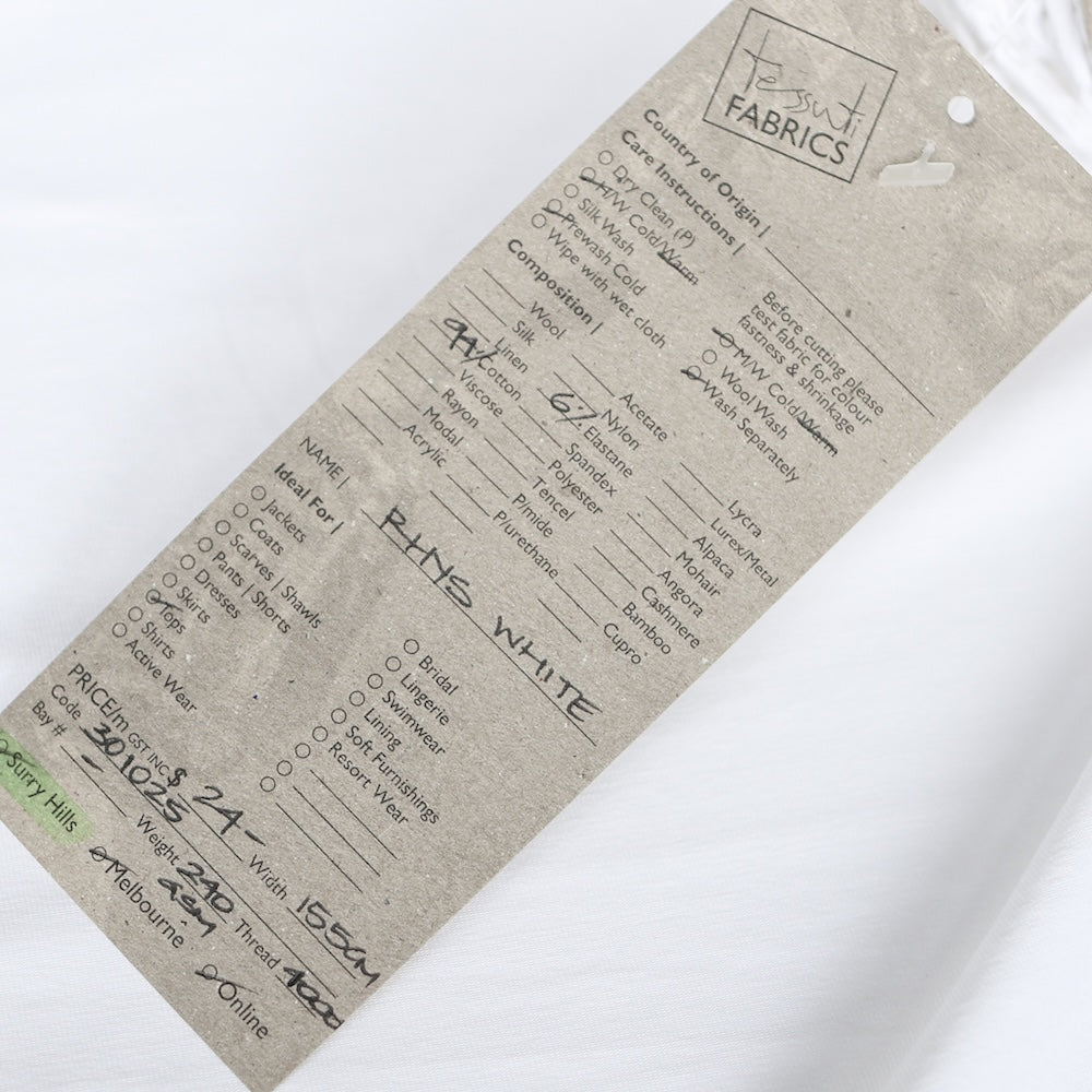 White 96% cotton 4% elastane jersey