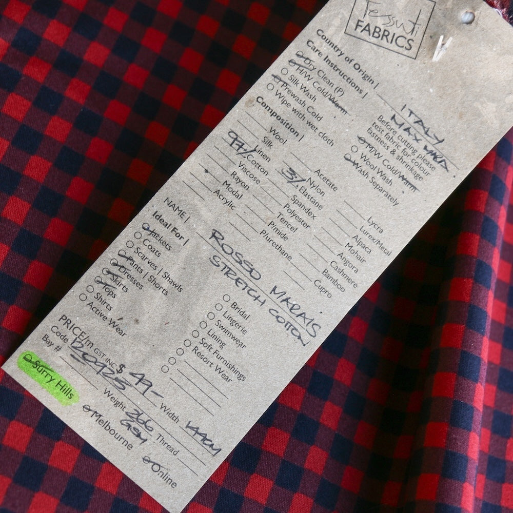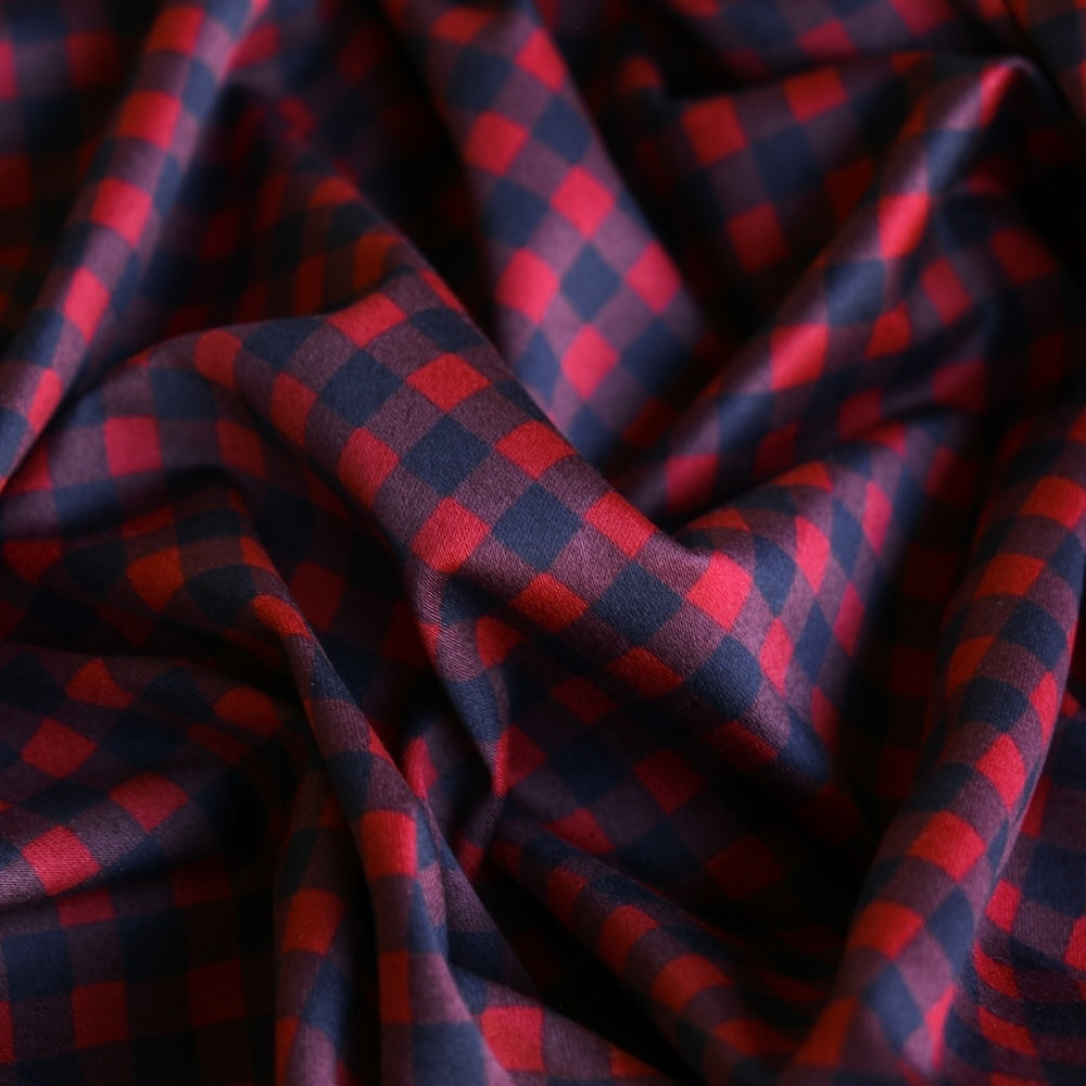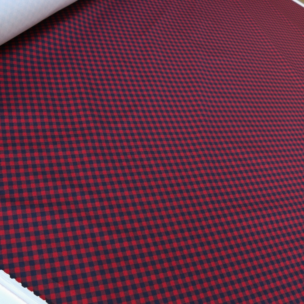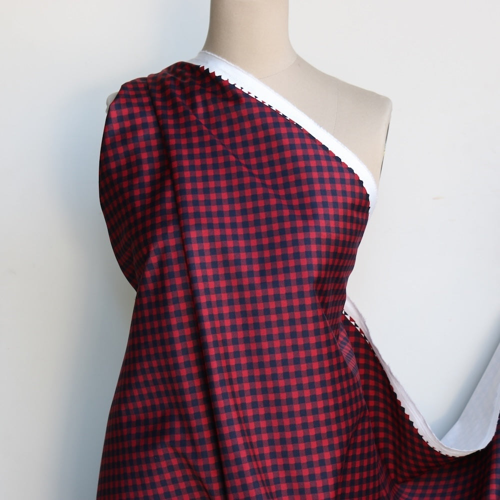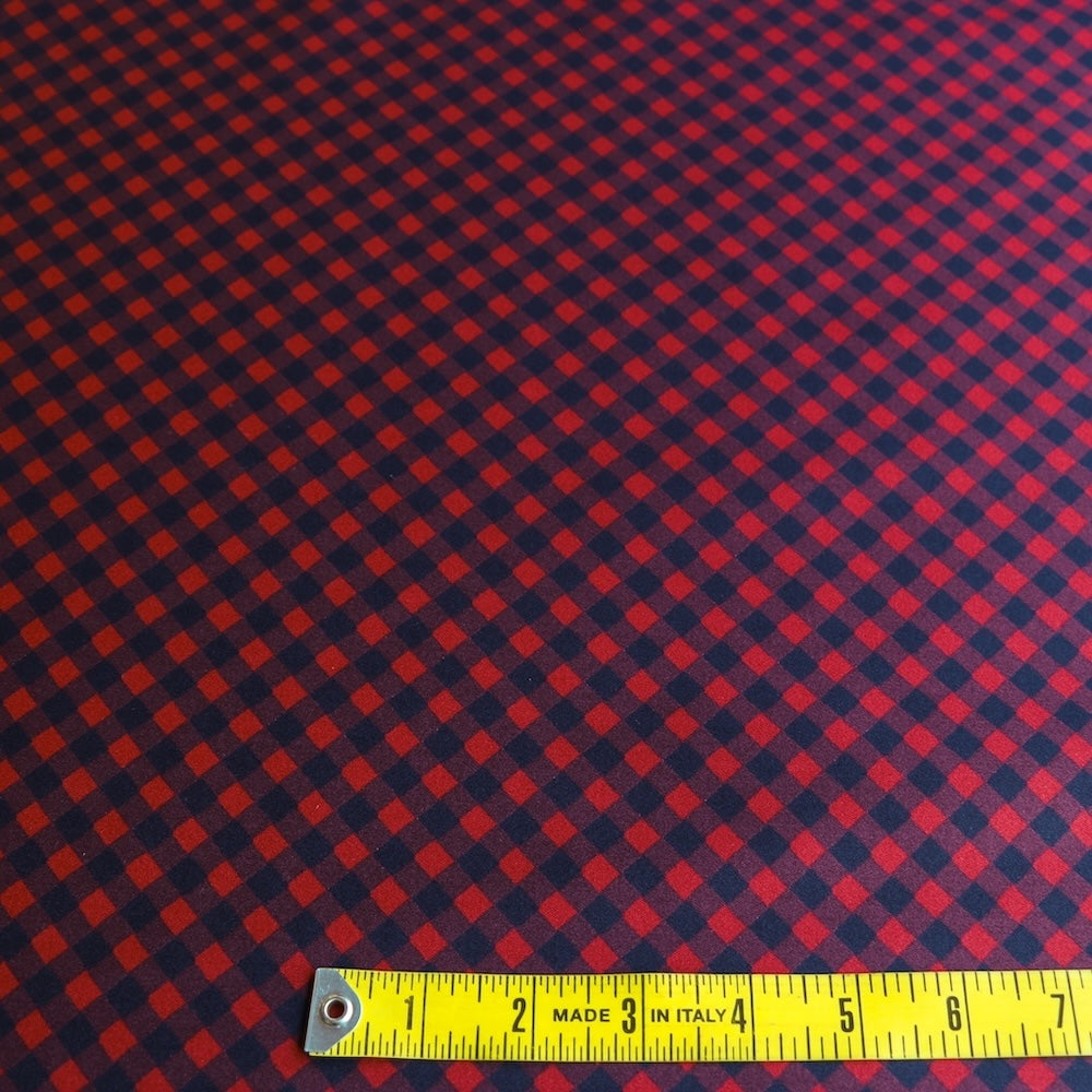Italian designer navy/red checked printed 97% cotton 3% elastane stretch woven