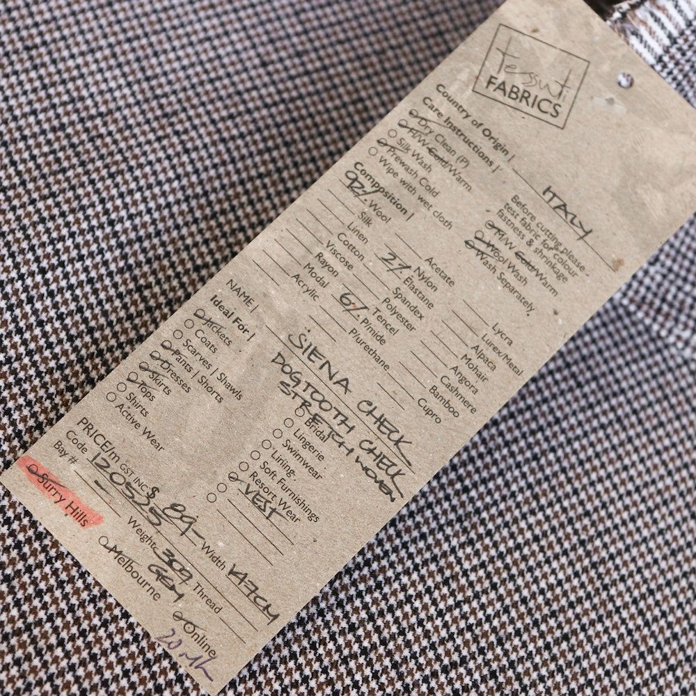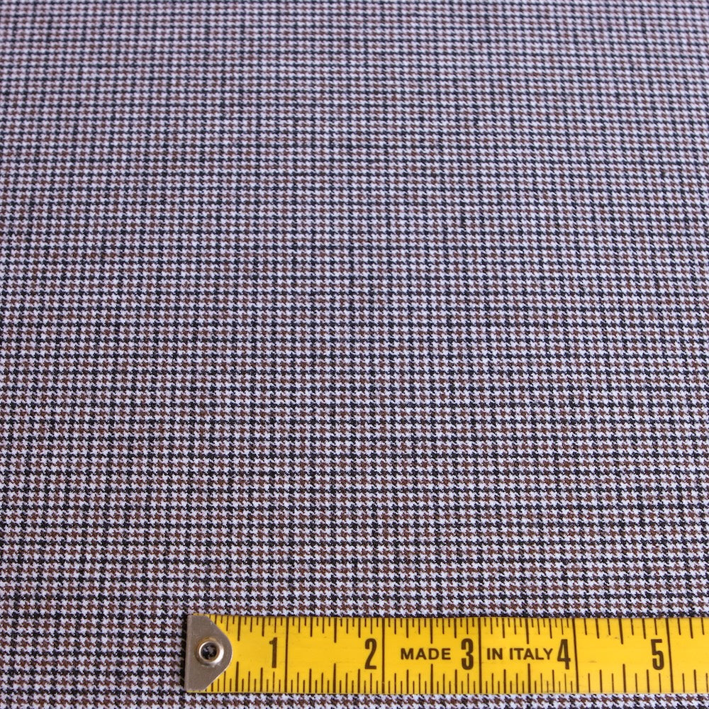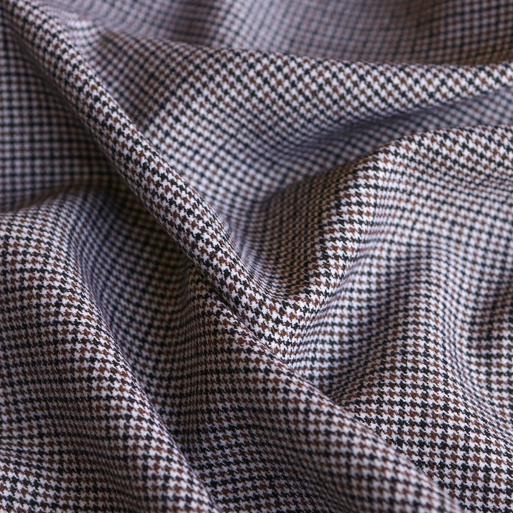 Italian brown/black dogtooth checked two way stretch 92% wool 6% polyamide 2% elastane