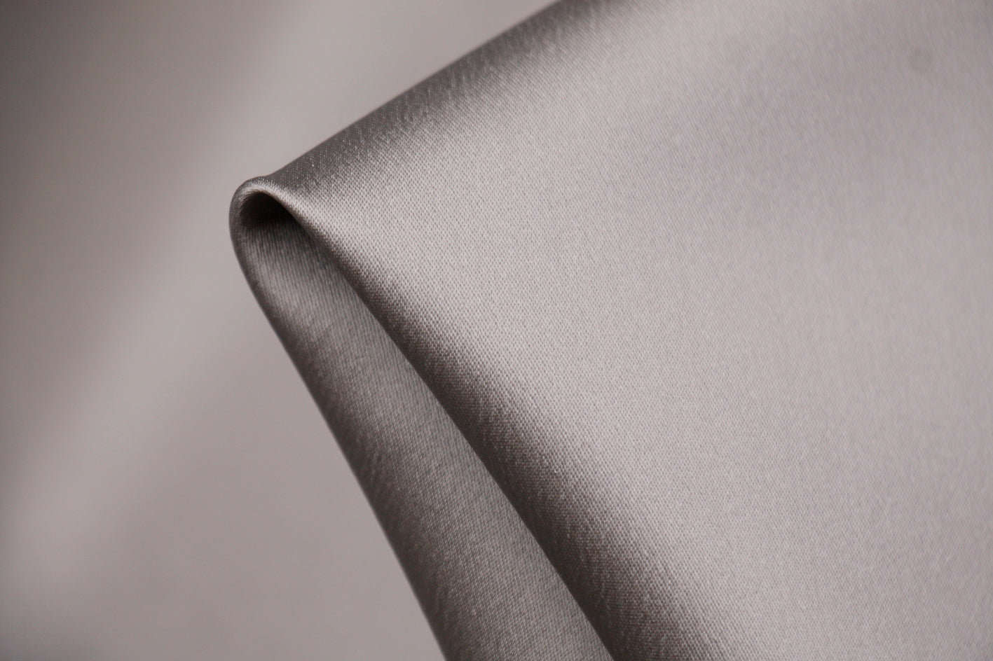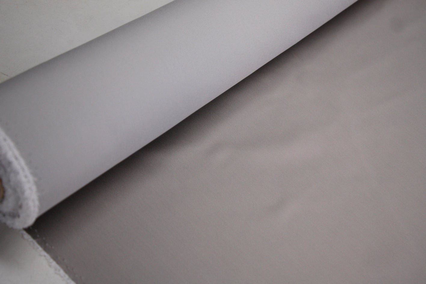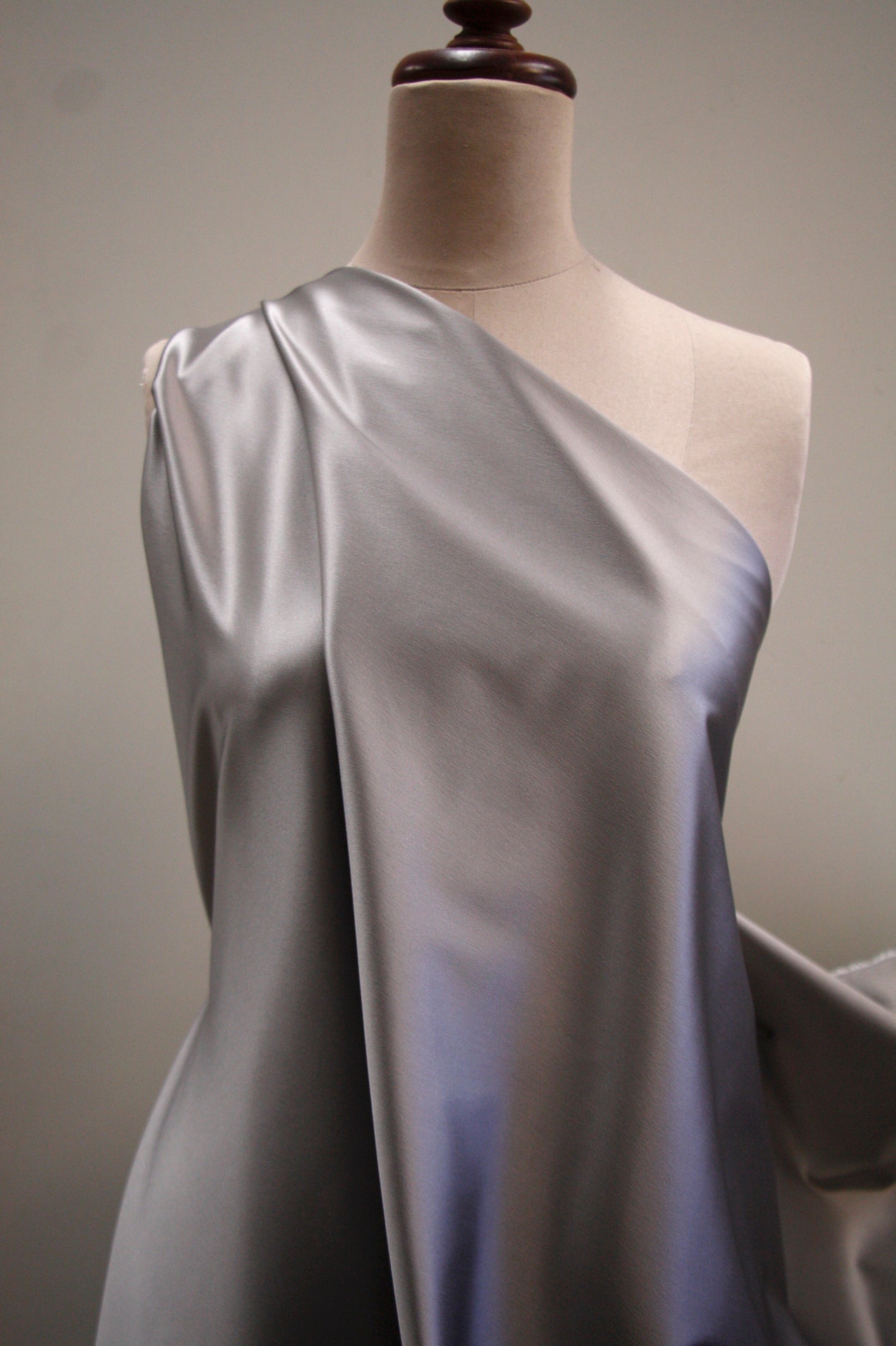 Taupe Grey Italian 57% acetate 37% polyamide 6% elastane stretch woven satin. Width: 145cm.