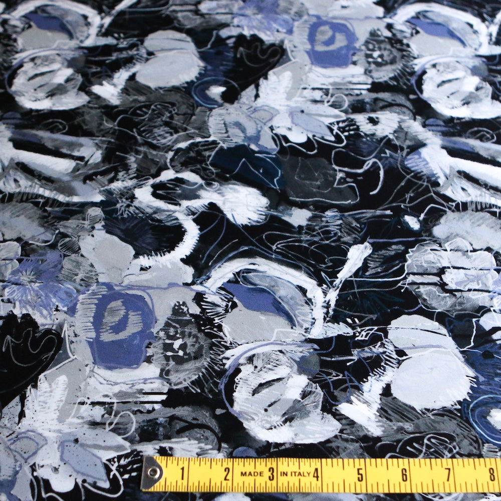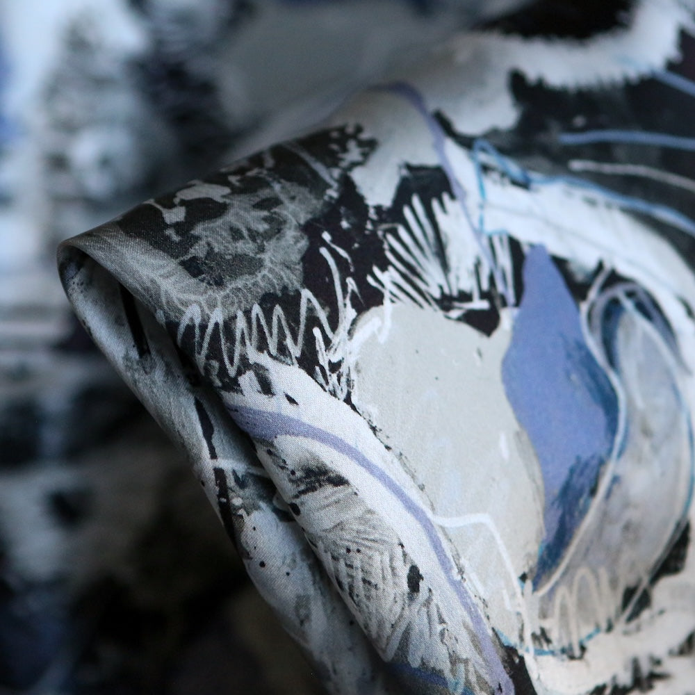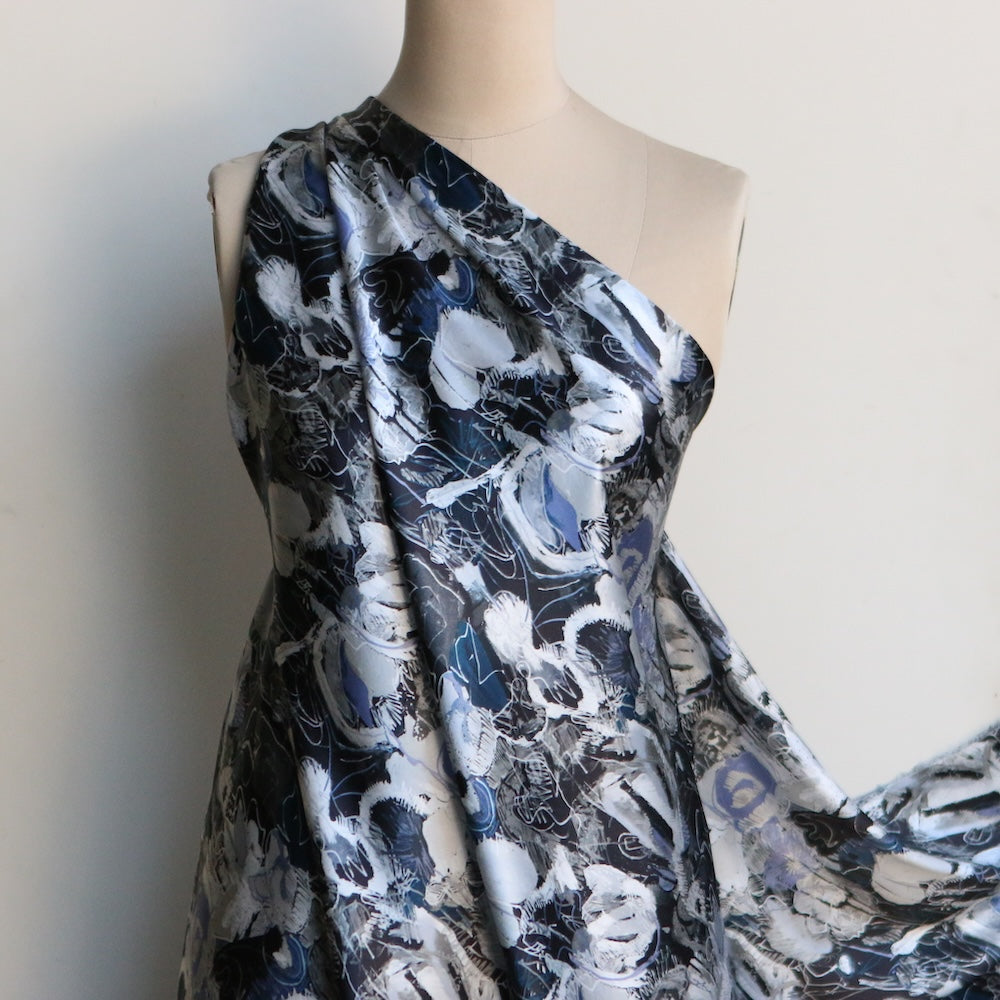 Liberty Fabrics black/wedgewood/grey printed 100% silk satin