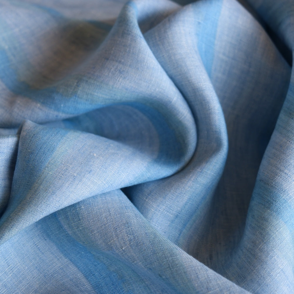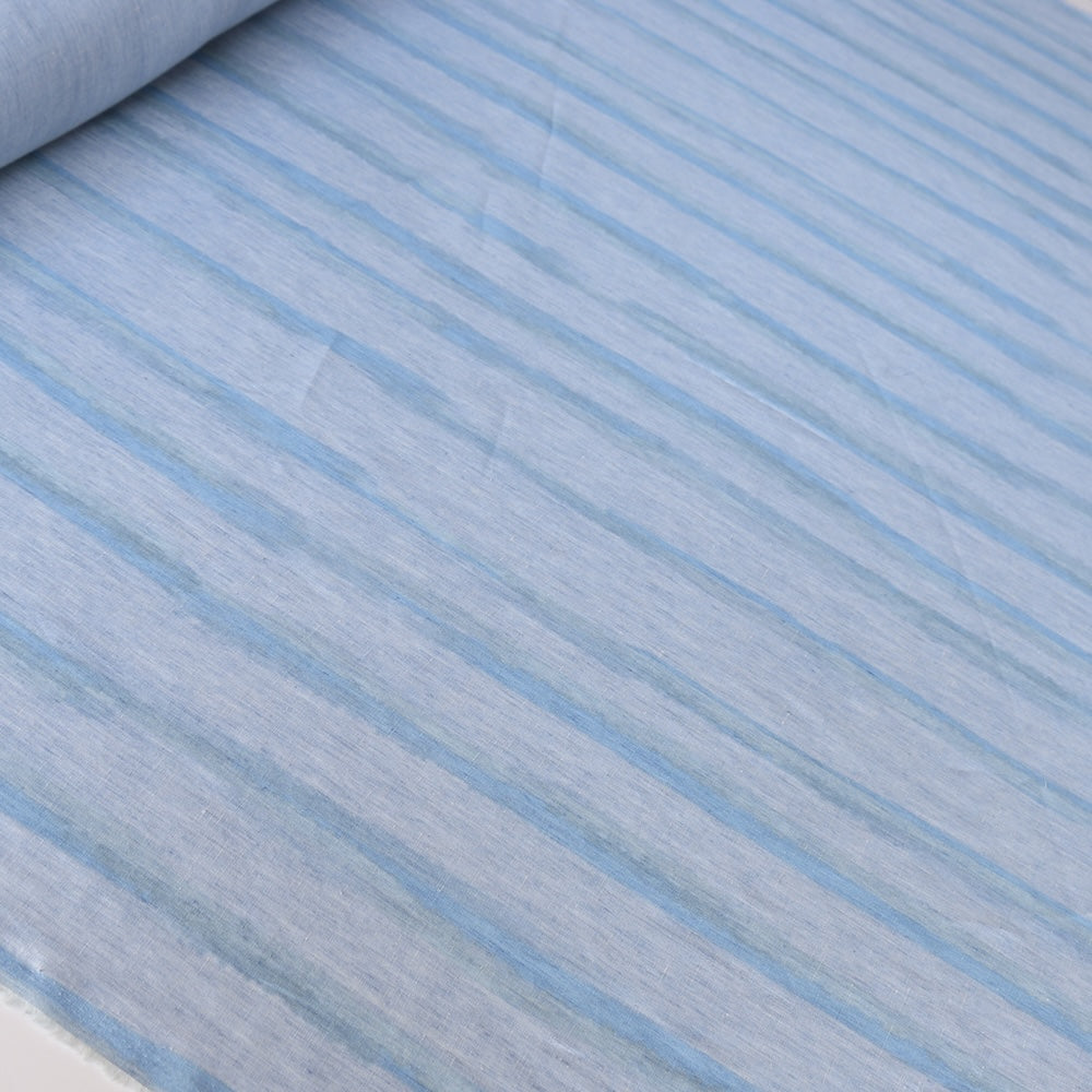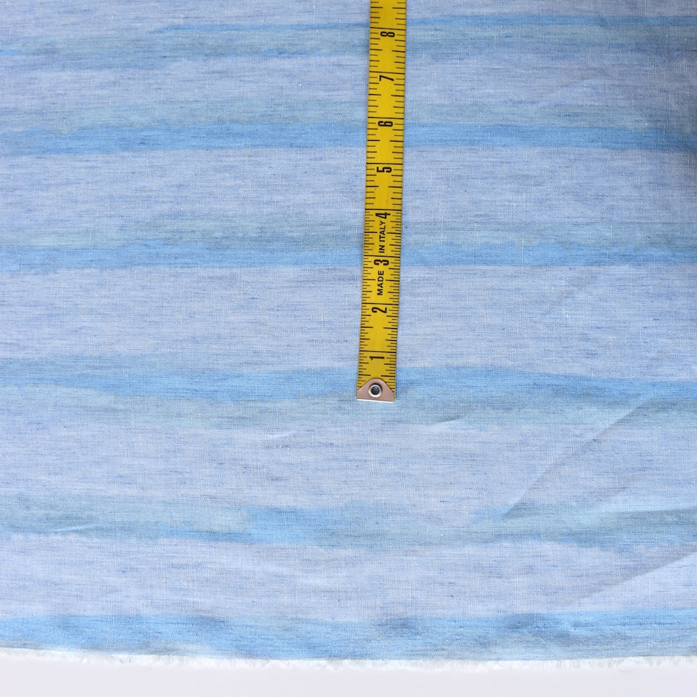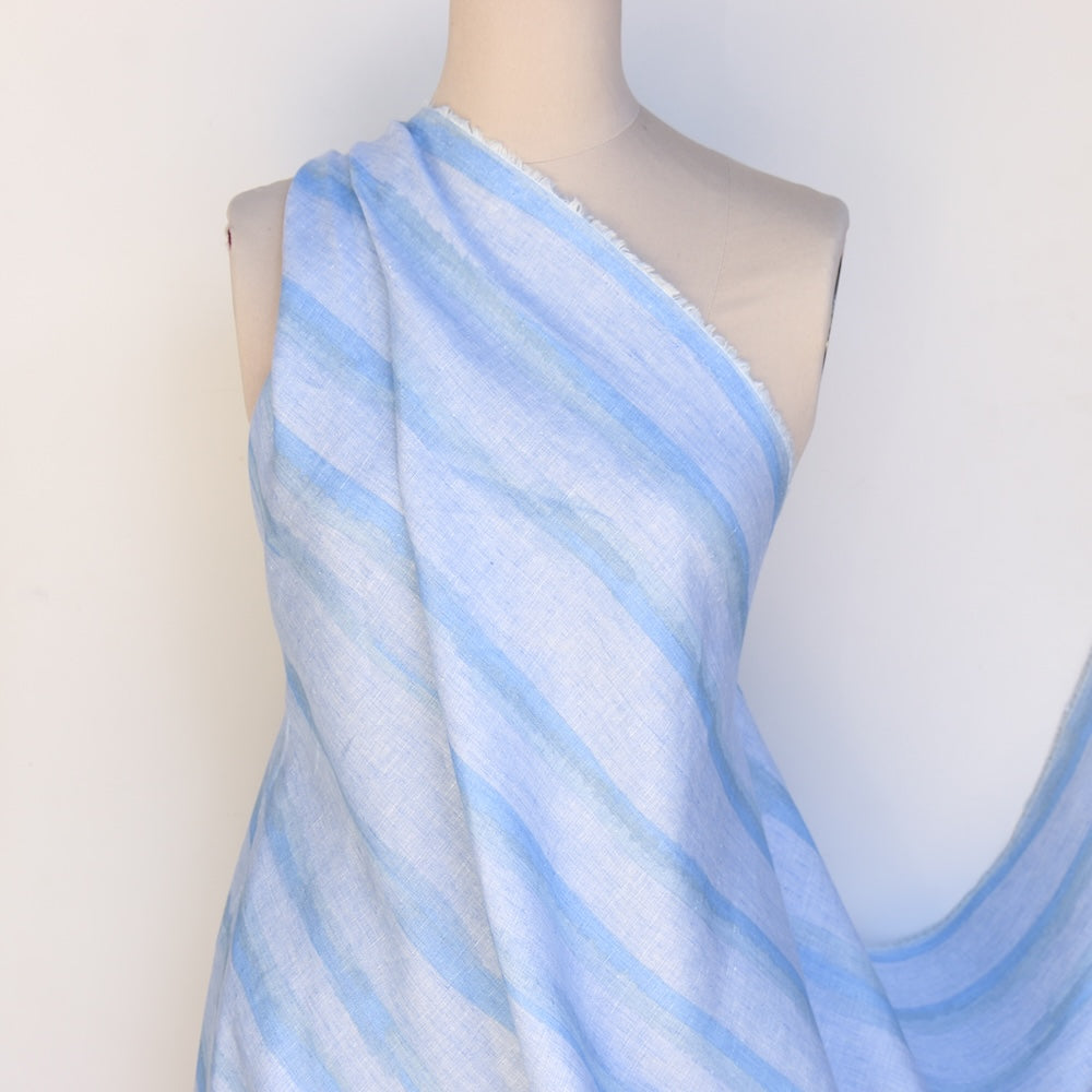 Italian designer yarn dyed sky/blue/aqua striped 100% linen