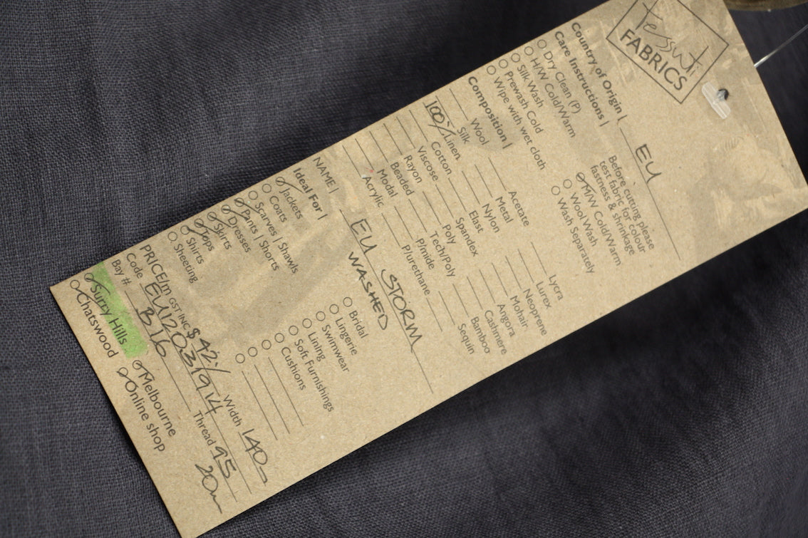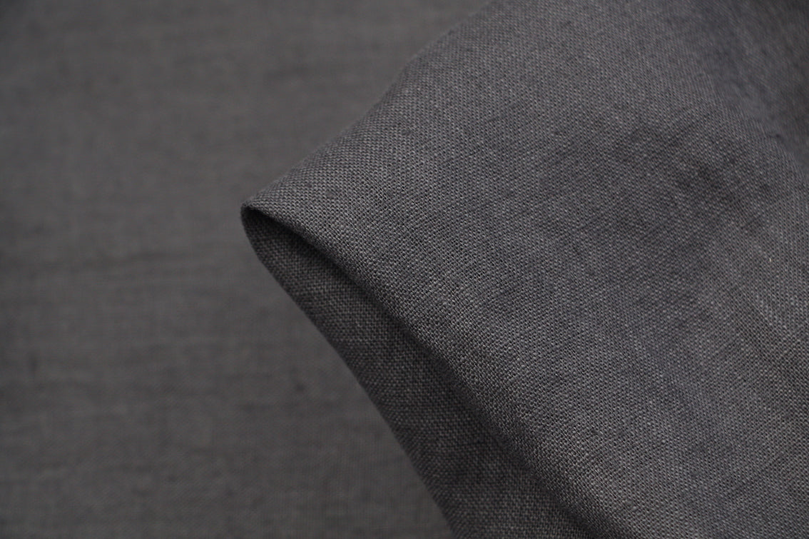 Storm grey washed European 100% linen. Width: 145cm Weight: 220gsm