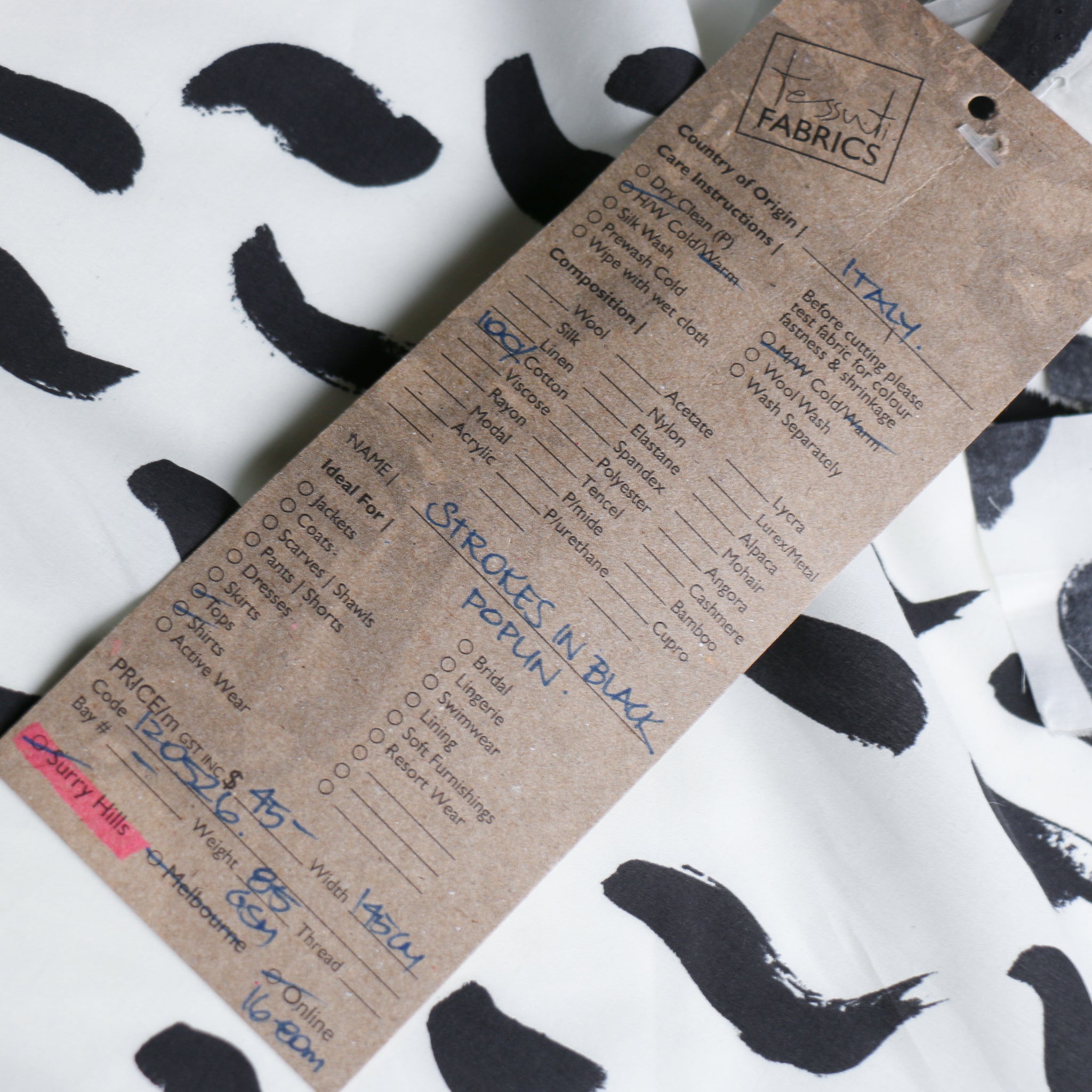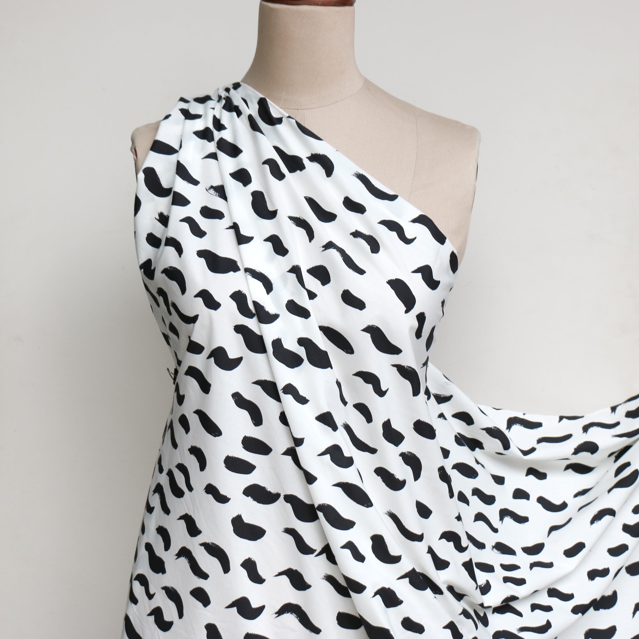 Italian designer printed black/white strokes 100% cotton poplin