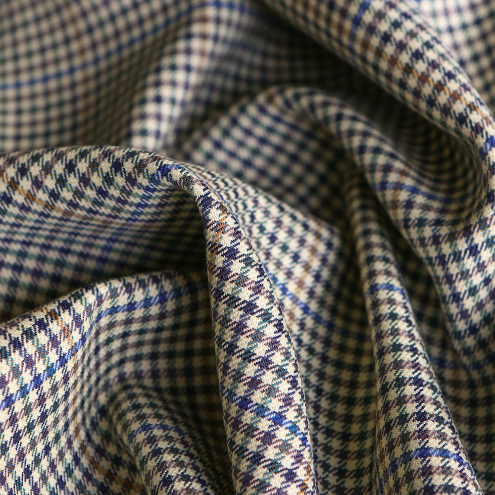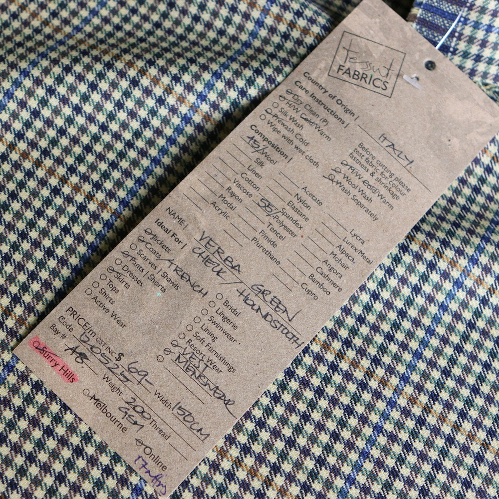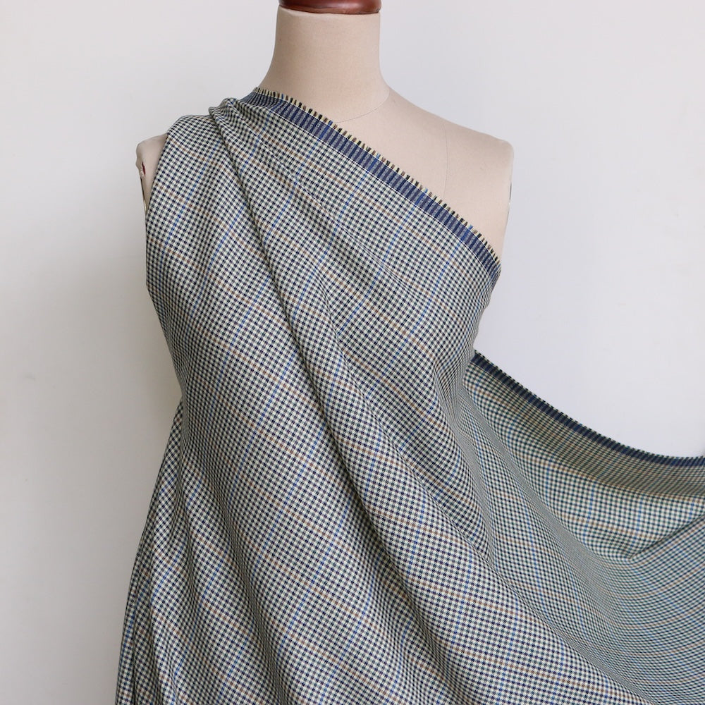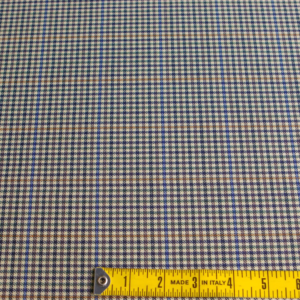 Italian black/green/sage/blue/tan checked 55% polyester 45% wool