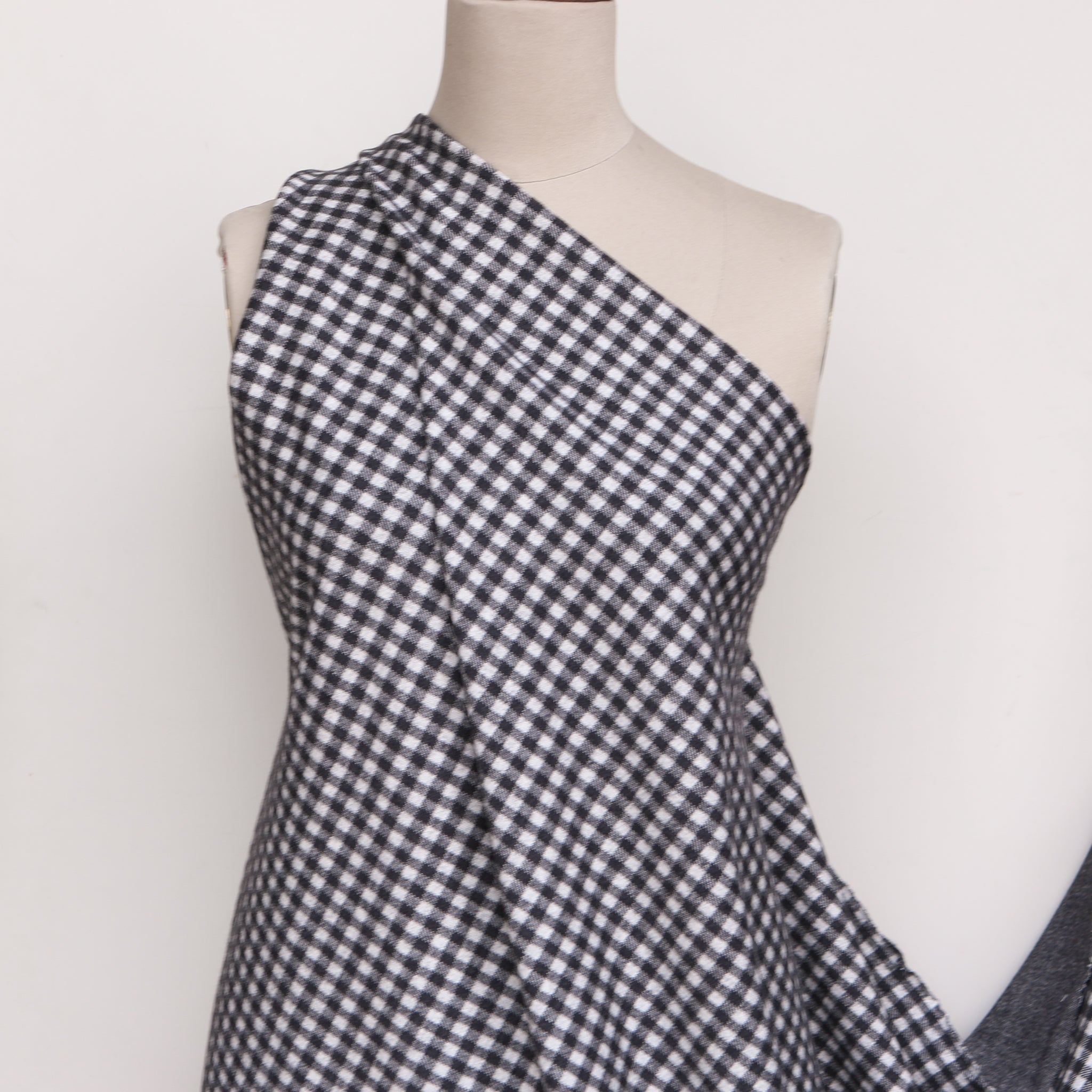 Italian charcoal/grey gingham checked double sided 100% wool knit