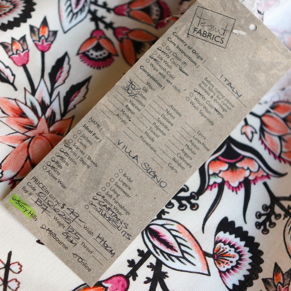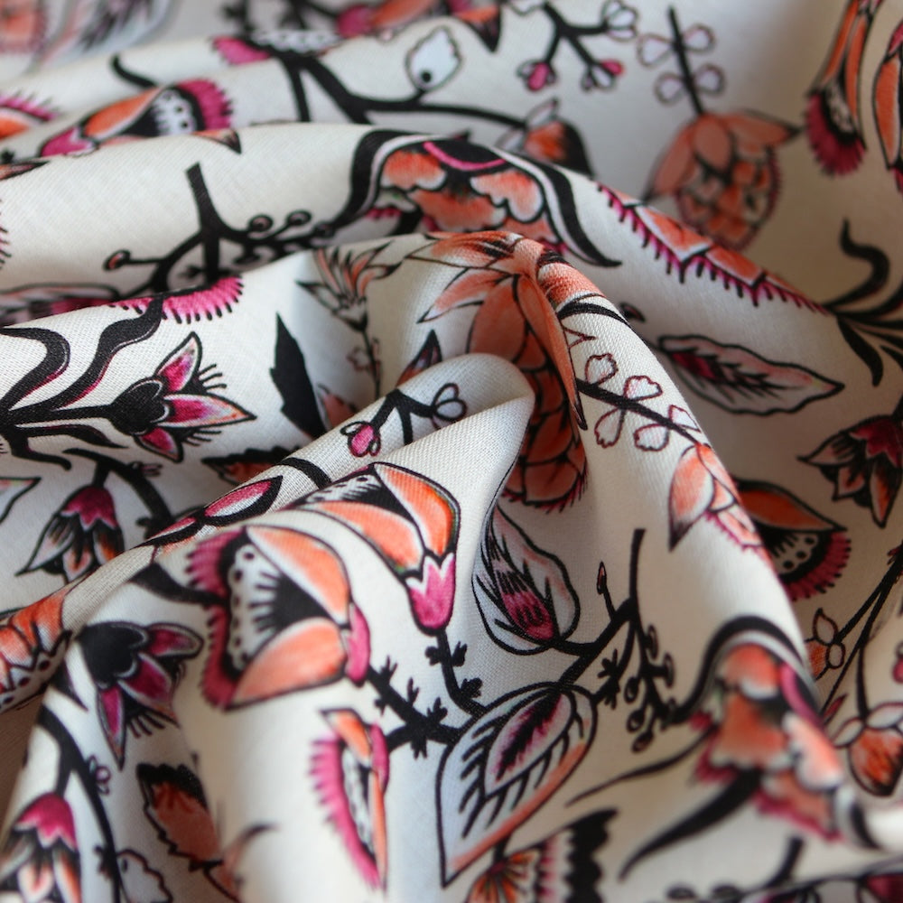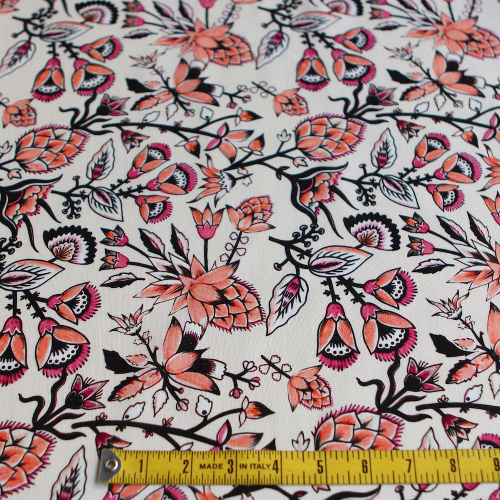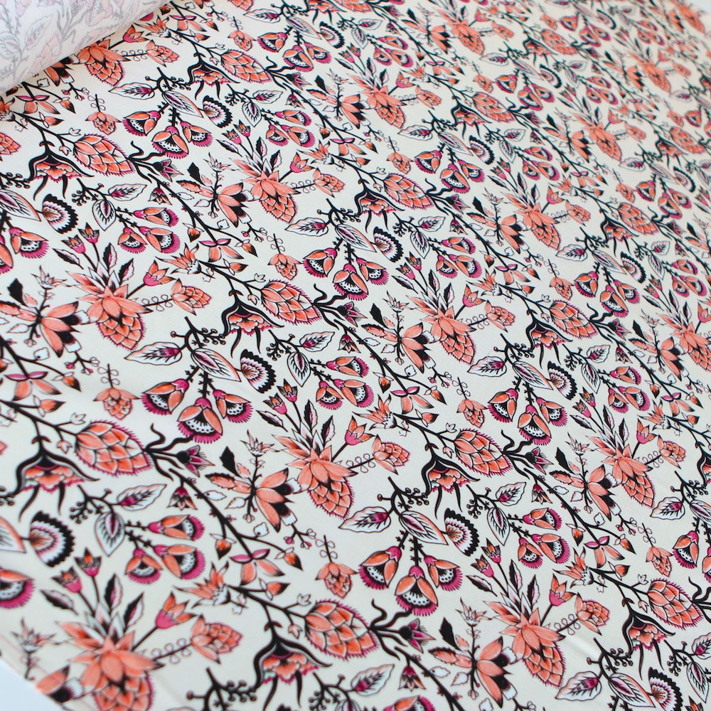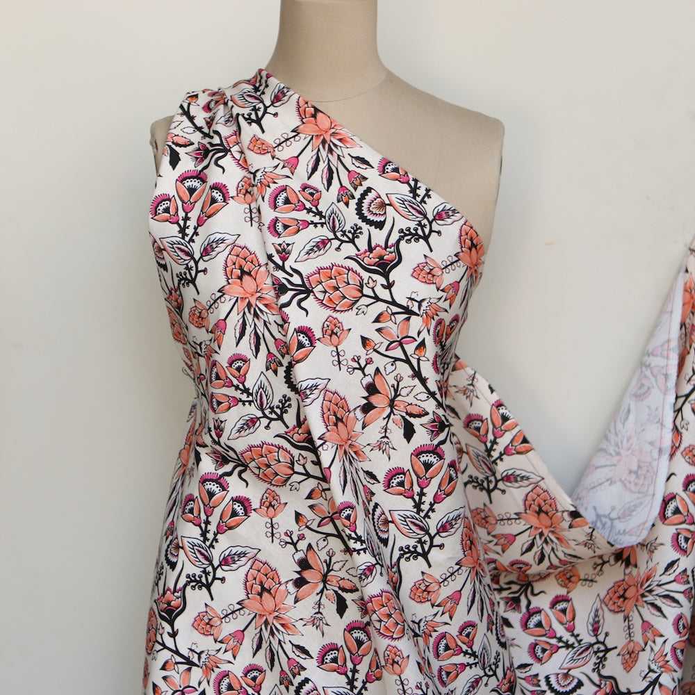 Italian coral/pink floral printed 70% linen 30% cotton