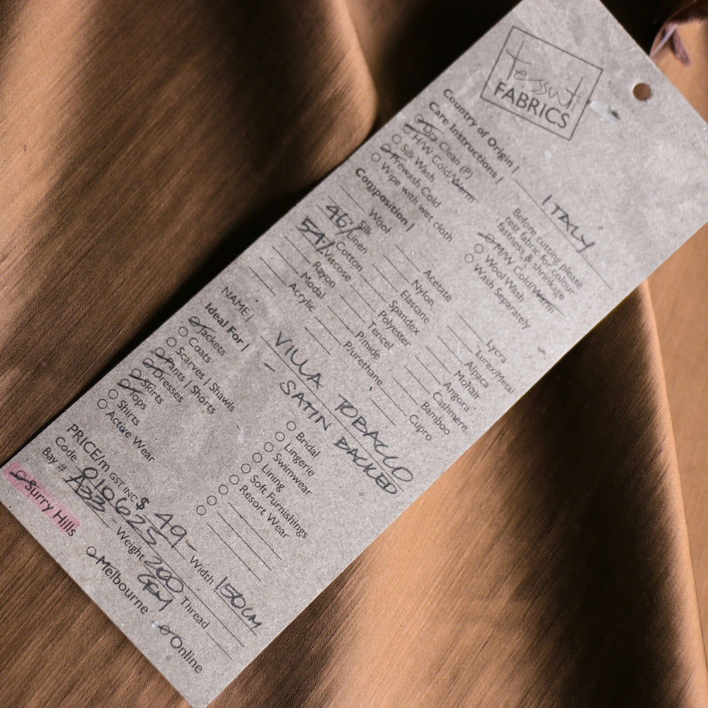 Tobacco satin backed 54% viscose 46% linen - can be made up on either matte or satin side