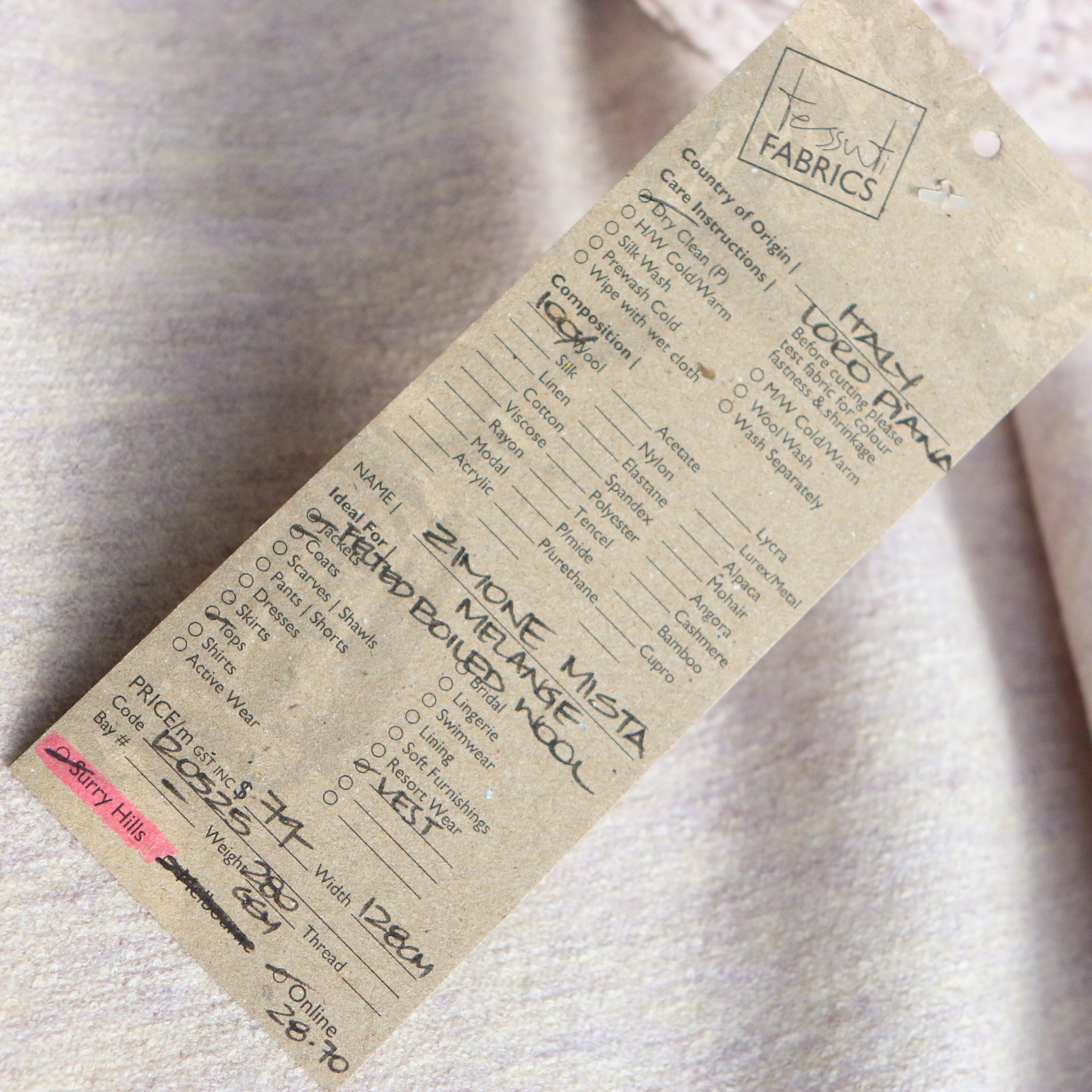 Italian winter white/lavender melange felted/boiled 100% wool double knit