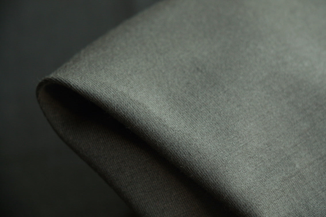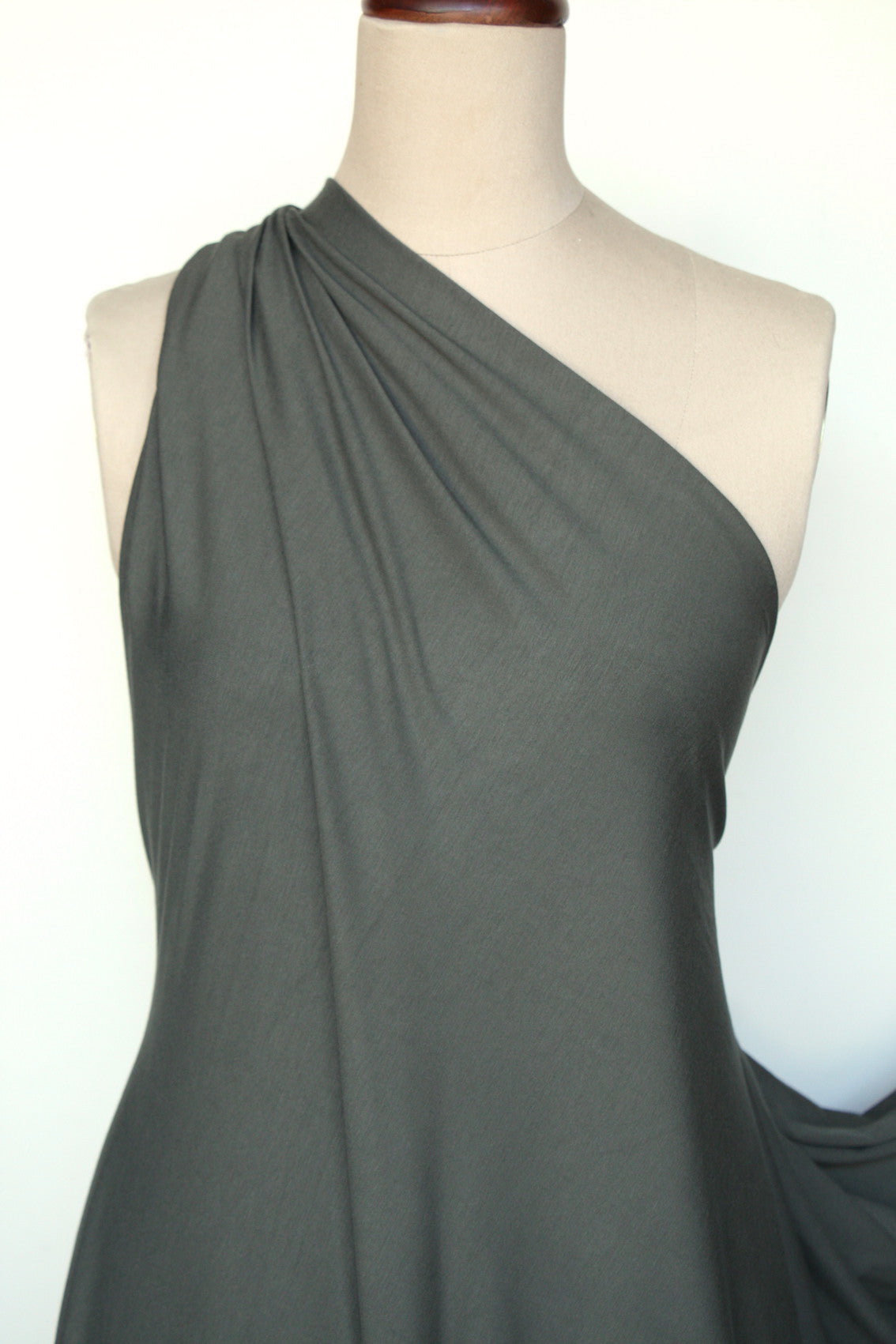 Quality olive green 92% viscose bamboo 8% elastane heavy jersey.