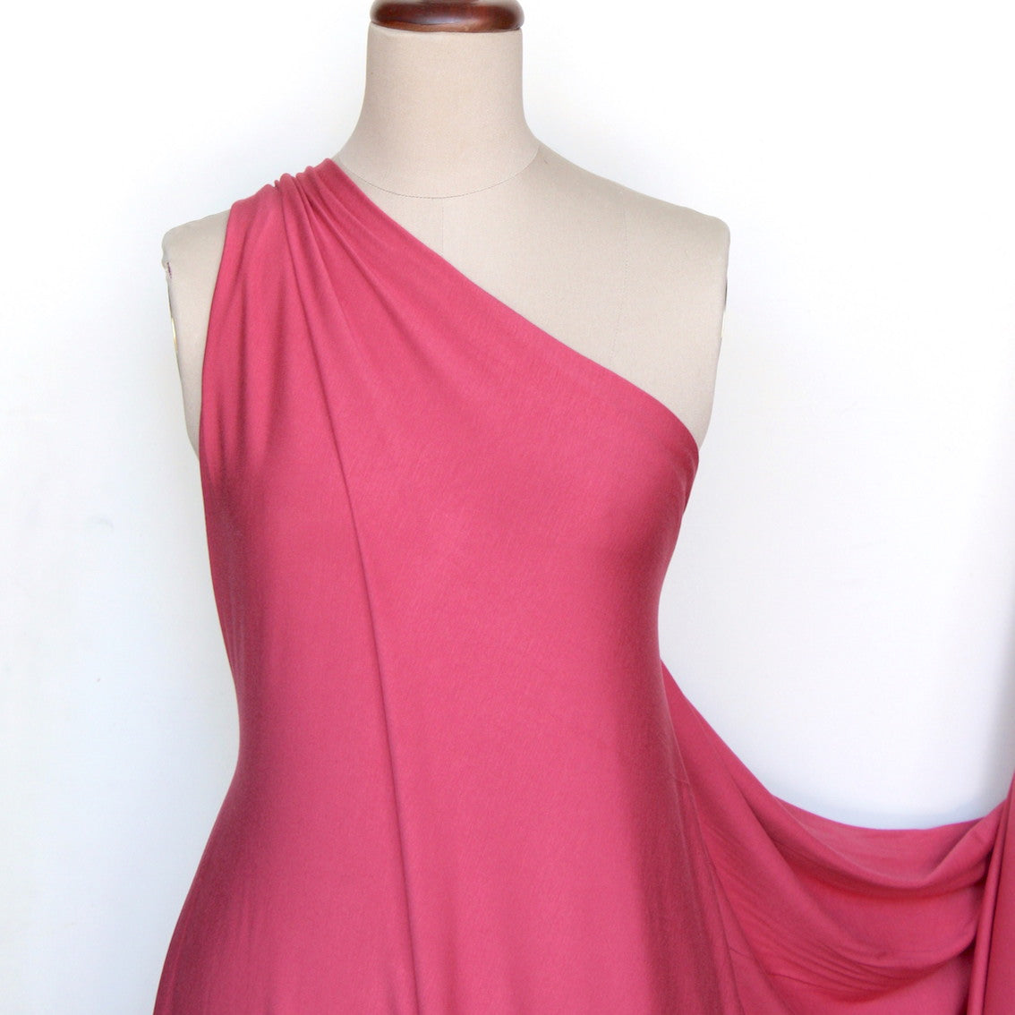 Quality rosey pink 92% viscose bamboo 8% spandex light weight jersey.