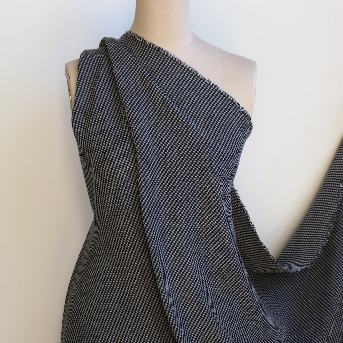 Italian black/grey mini check 100% cotton corduroy